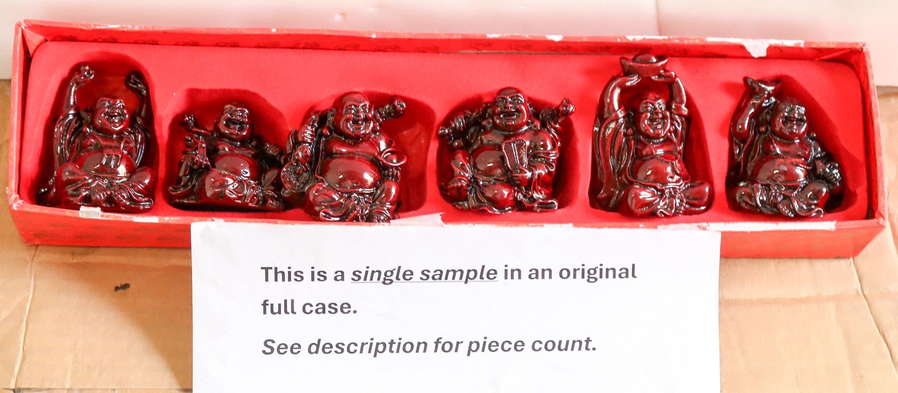 60 sets of Resin Buddha's with 6x 2.5x1.75" figures in original boxes. These items have been in storage for 20 years and have not been inspected. Sold as is.