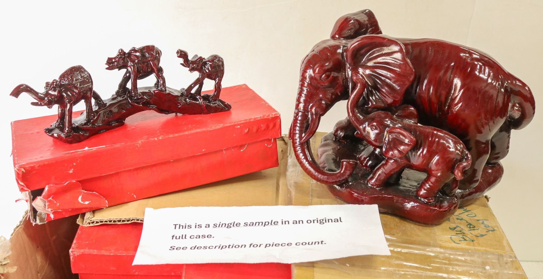 2x 6x9x6.5" resin elephant with baby. 19x resin 3 elephant train 2.75x9".