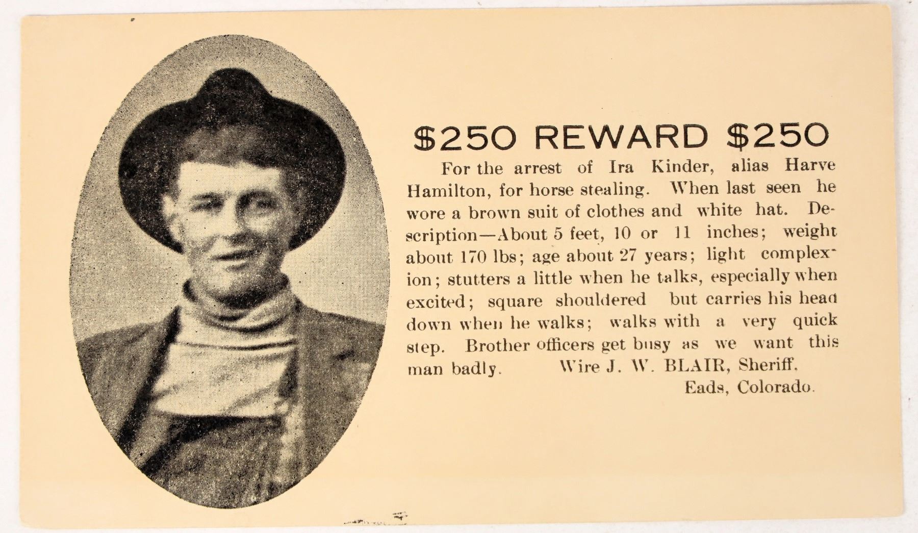 Reward Postcard for Horse Thief, Eads, Colorado, 1913 [207357]