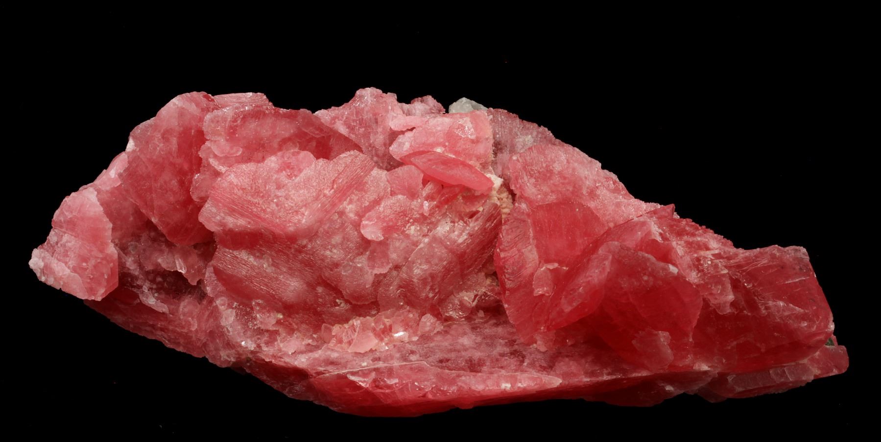 This specimen is a cluster of highly-flattened, rhombohedral crystals of bright reddish-pink rhodochrosite from the Wutong Mine. Opened in 1958 as a silver mine, the Wutong Mine gained worldwide attention in 2009 and 2010 when several spectacular pockets of gigantic rhodochrosite crystals were encountered. Rhodochrosite is one of the world's most popular collectible mineral species and a good example of the Wutong mine rhodochrosite is a must have additions to a comprehensive suite of rhodochrosite from worldwide localities. Dimensions (cm): 4.2 H x 13 W x 2.8 D. Location: Wutong Mine, Liubao, Cangwu Co., Wuzhou Prefecture, Guangxi Zhuang Autonomous Region, China