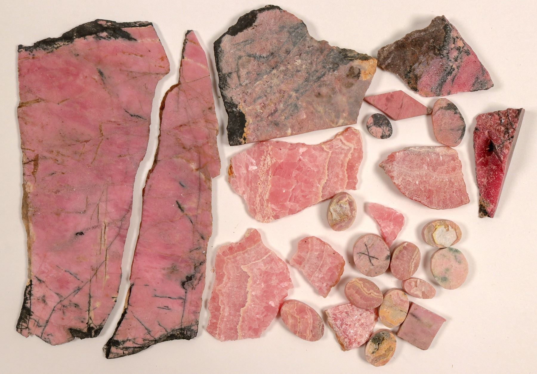 1/3 of a quart zip bag of Rhondite and Rhodochrosite mostly sliced specimens