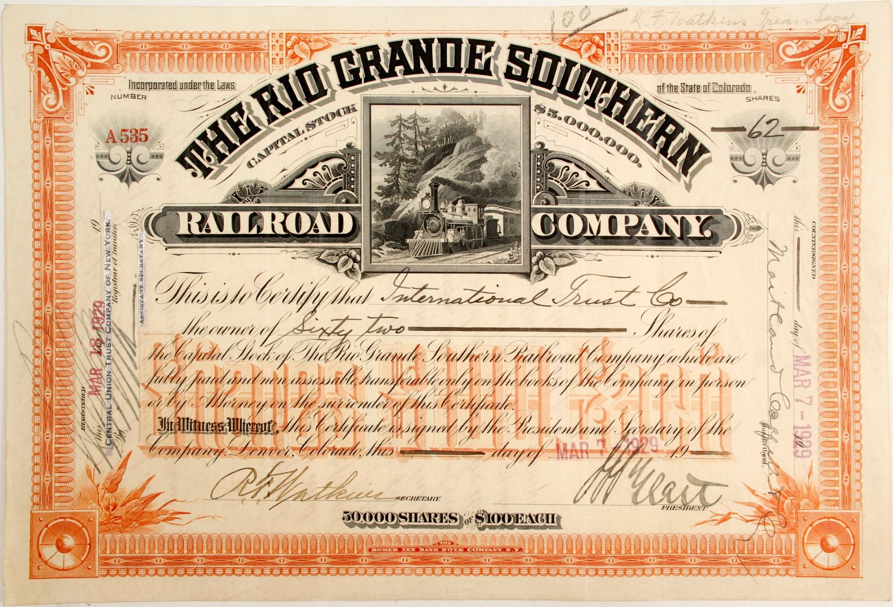 Rare I/U #535 Intl. Trust Co 62 shares 1929. Mountain train vignette. Prag Collection. State: City: Date: 1929 HWAC# 84206