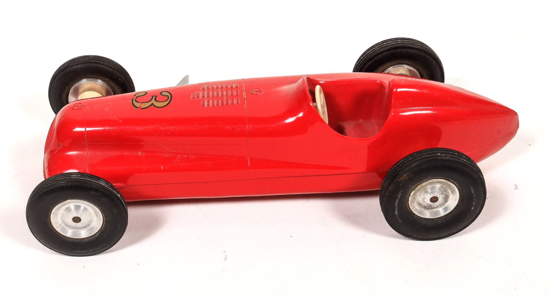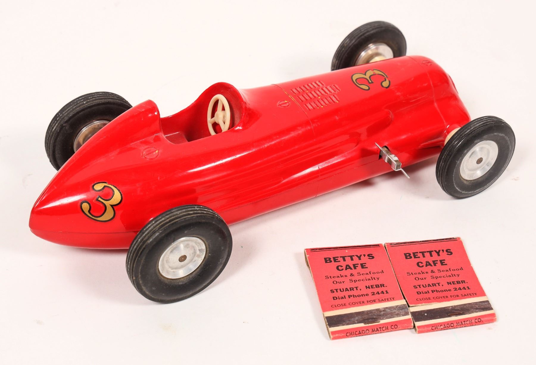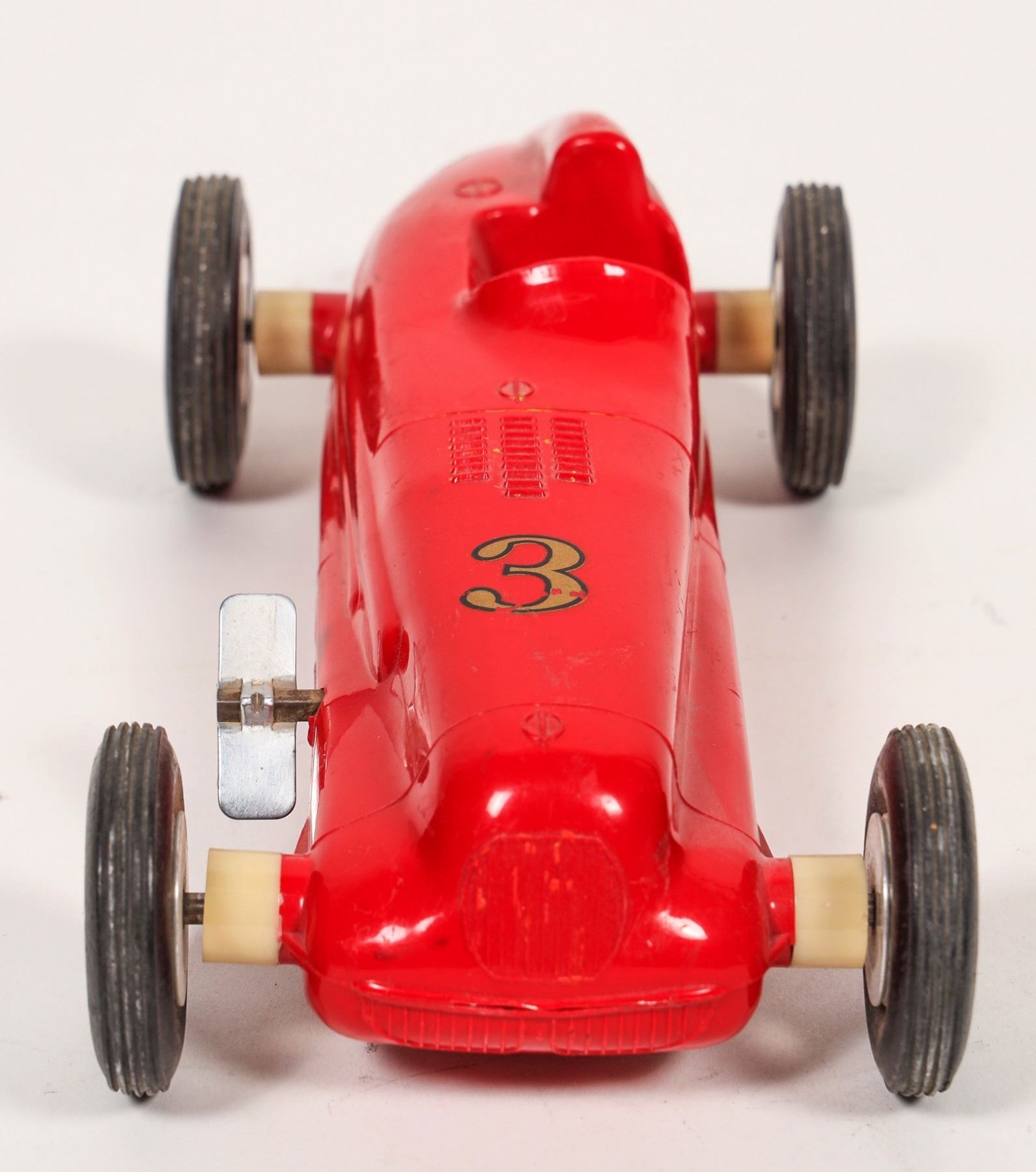 1. Rite Spot wind up vintage 1950's race car #3. No damage is visible. The wind up partially worked, might need cleaning to function properly.