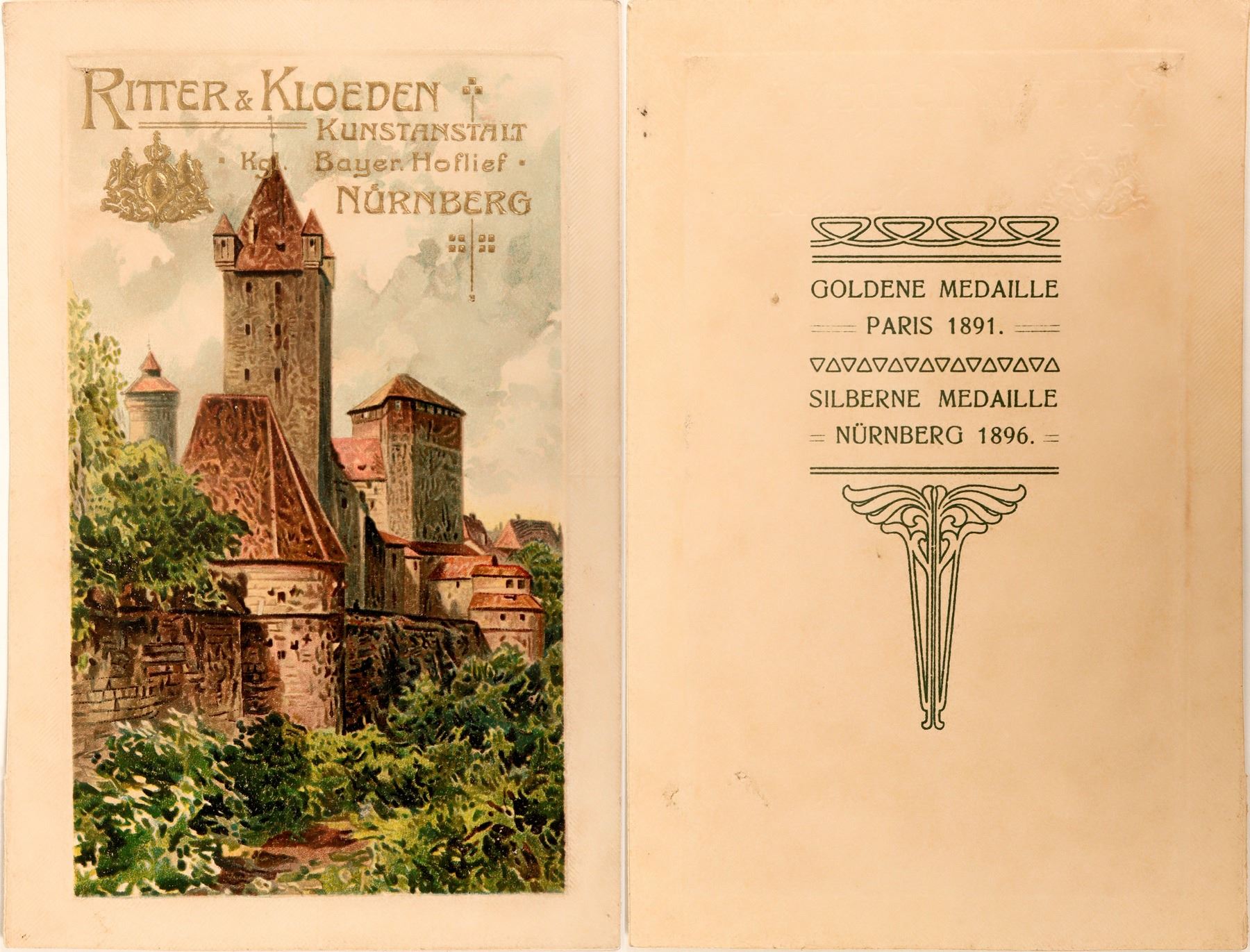 Ritter & Kloeden, Nurnberg, Gold Medal winner at Paris, 1891 and Silver Medal winner at Nurnberg, 1896 (printed on the back).