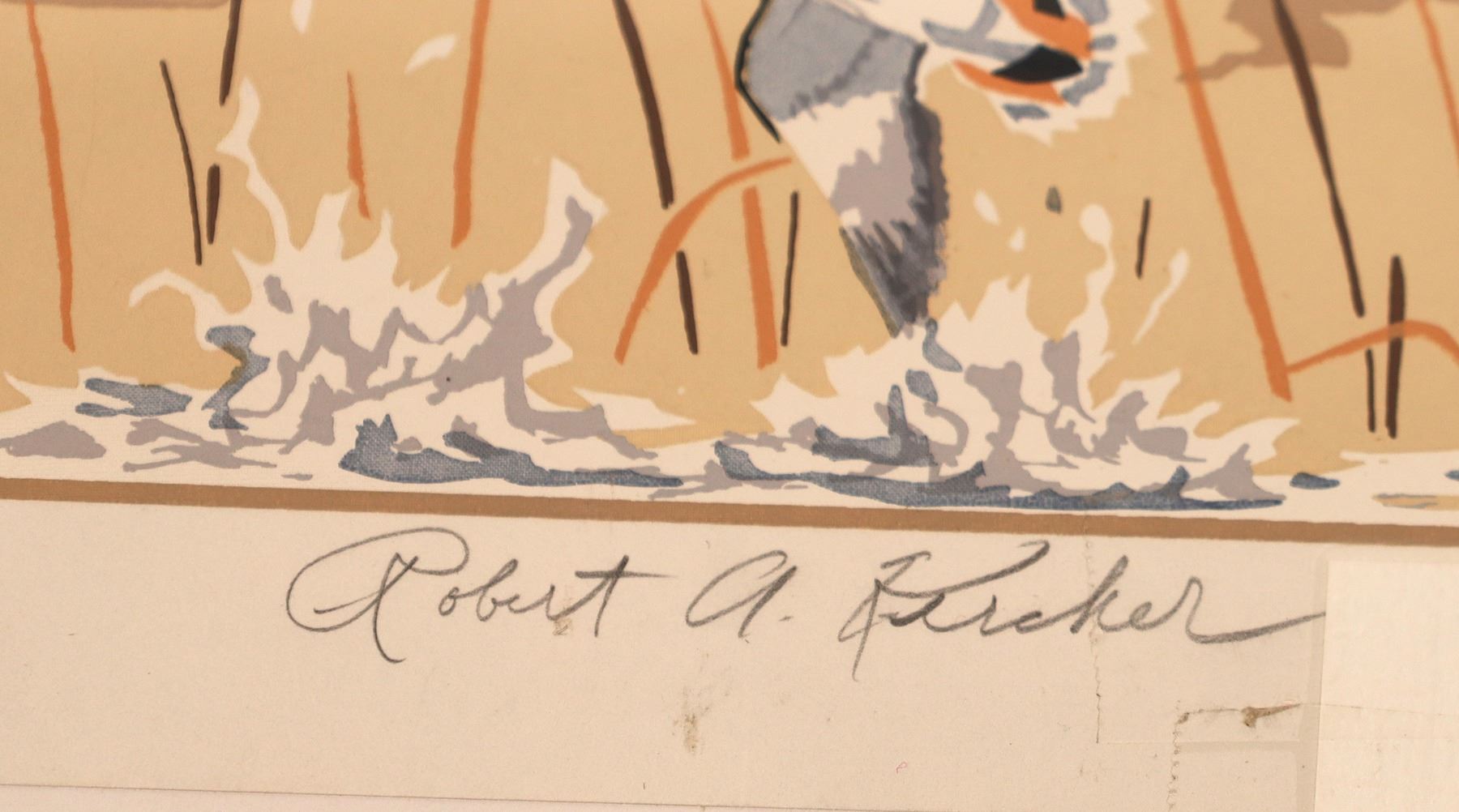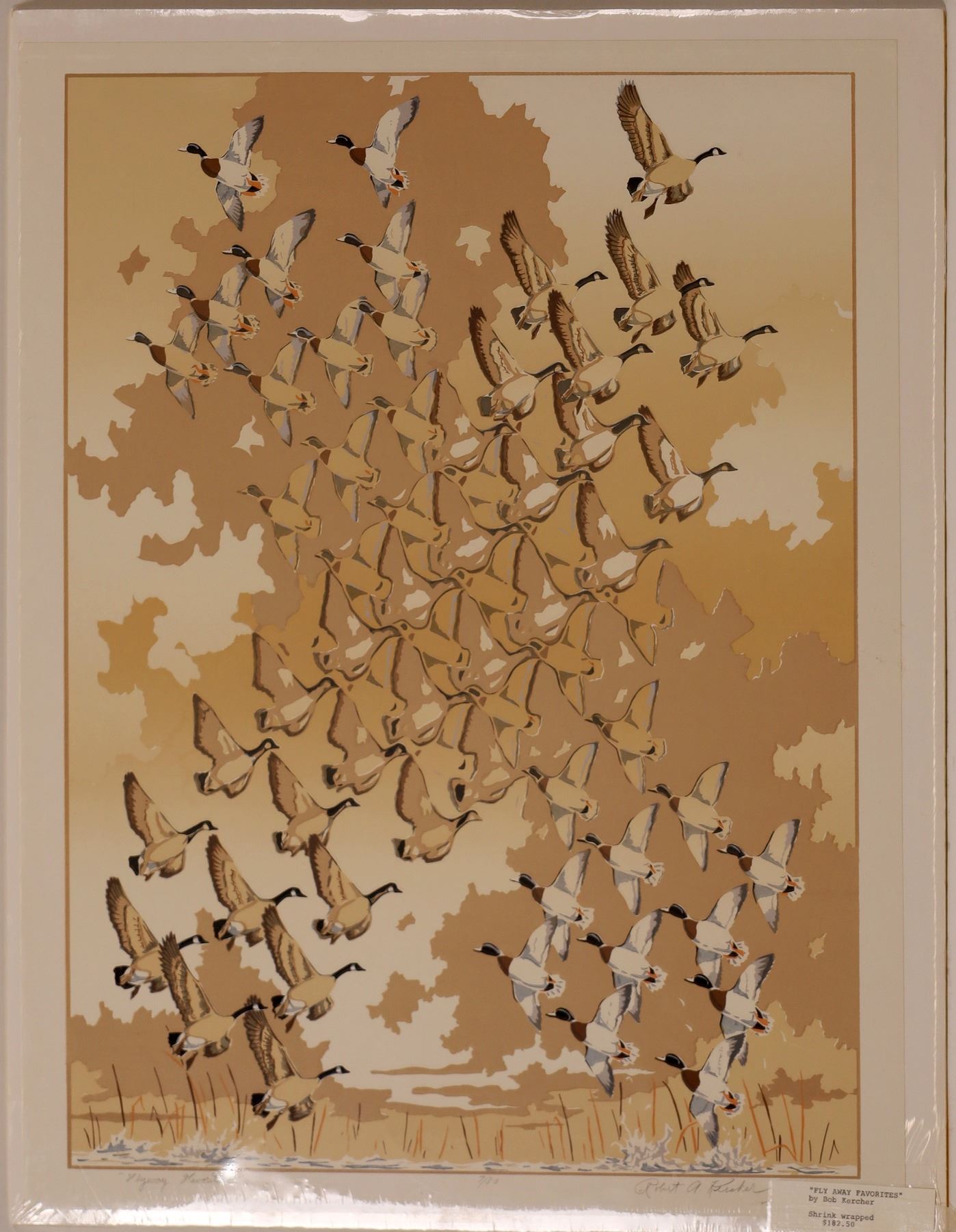 Serigraph of Canada Geese and Mallard Ducks numbered 7/80 by Robert A. Kercher.