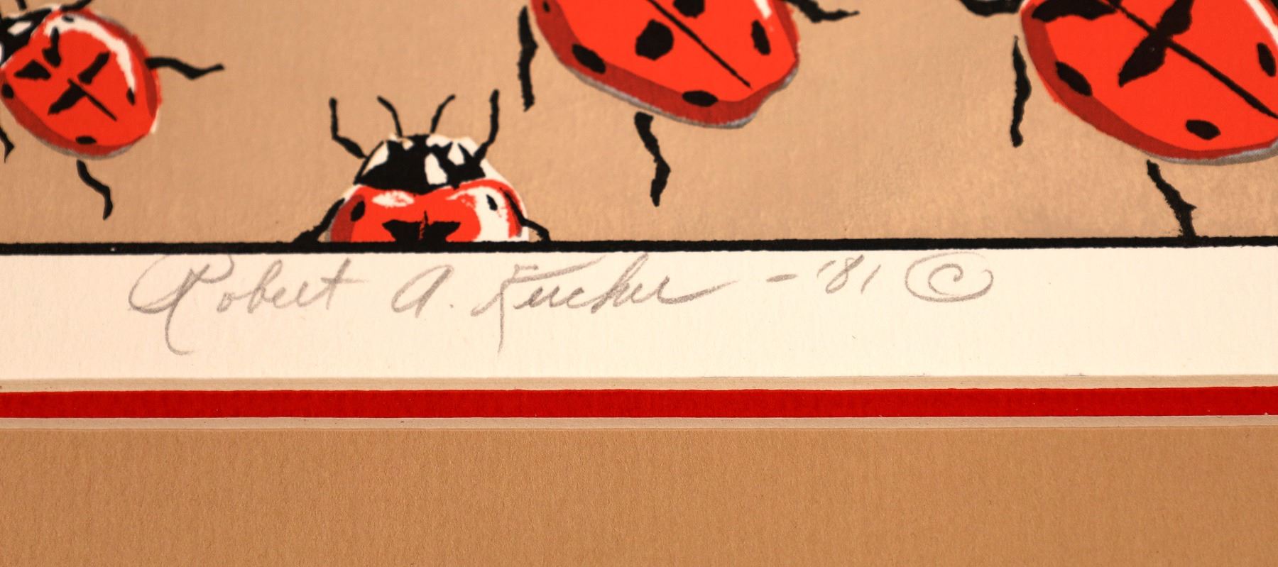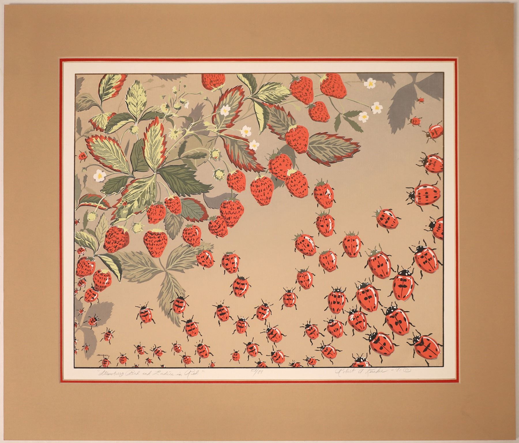 Serigraph of strawberries and Ladybugs, number 53/88 by Robert A. Kercher.