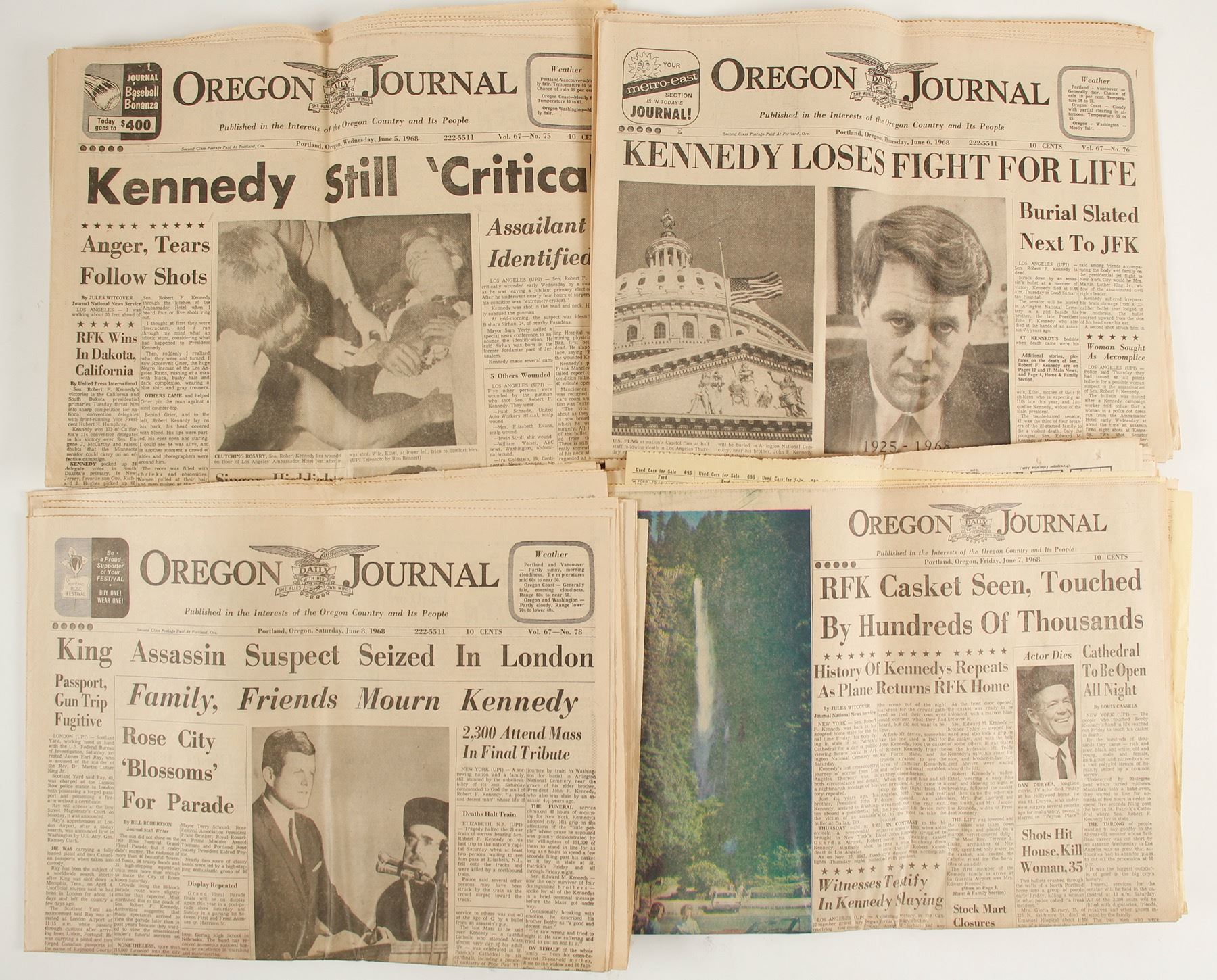 4 Oregon Journals covering Robert Kennedy shooting. June 5,6,7,8 1968. Complete editions