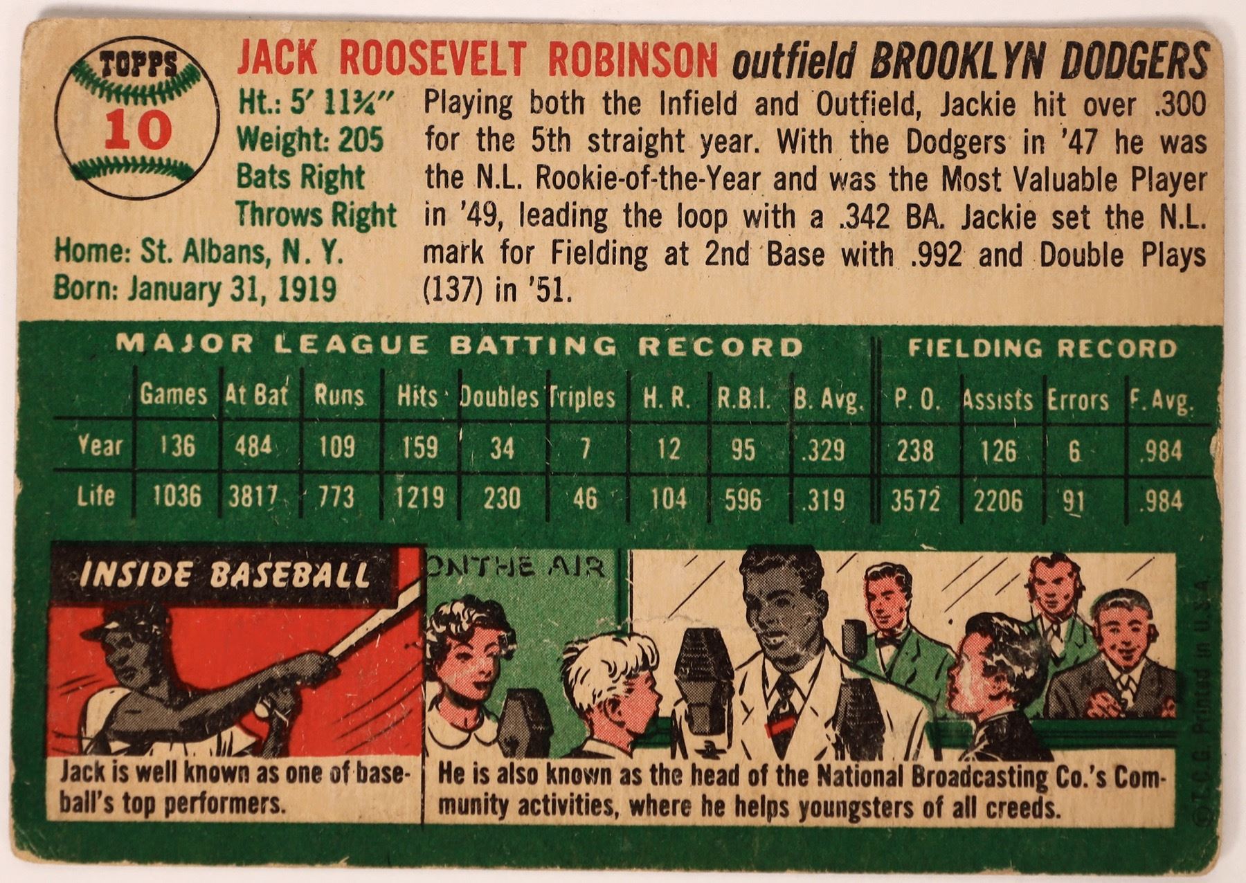 # 10. White background. Robinson was playing in both the outfield and infield. In 1947 he was rookie of the year and most valuable player. (r2)
