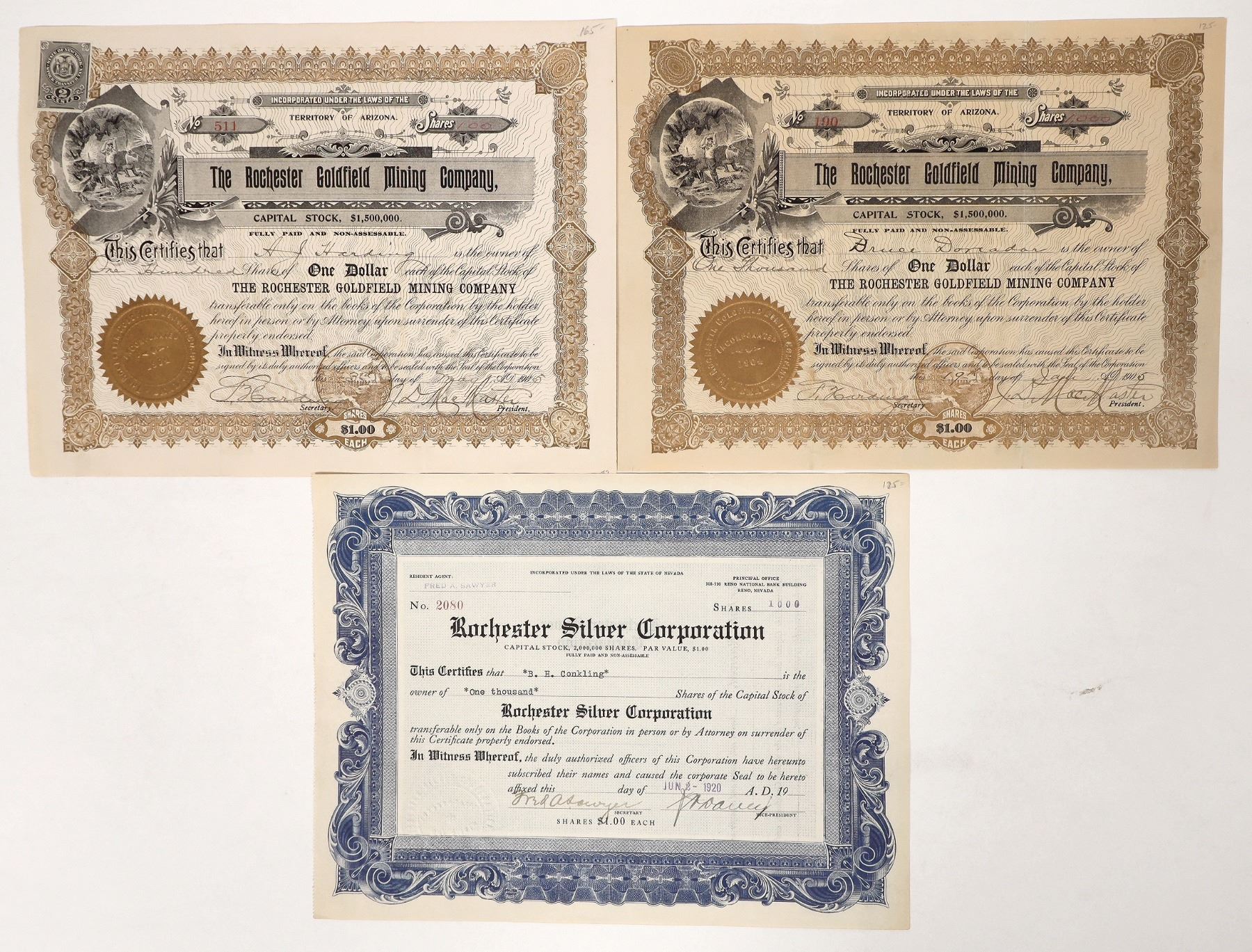 Issued-1920 Rochester Silver, 1905 Rochester Goldfield-2 different. This is a major gold and silver mining area today.