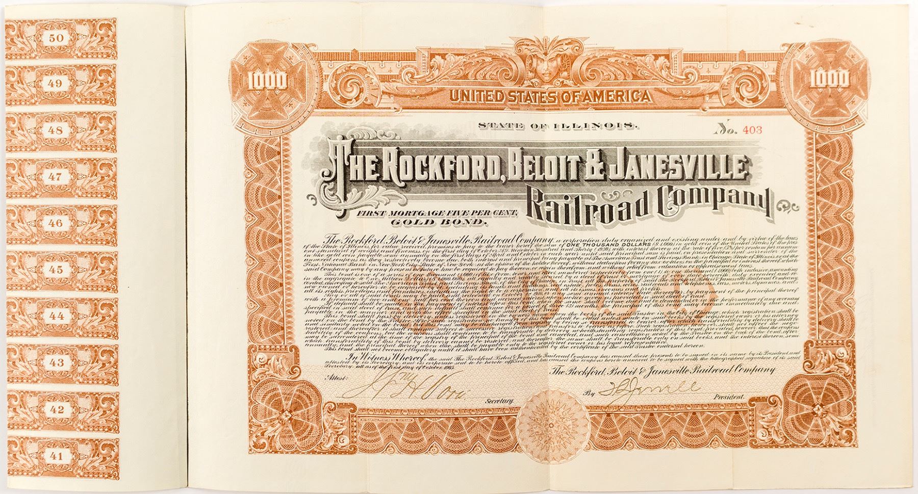 $1000 5% gold bond. 10" x 15". HWAC# 52633 Date: Location: Illinois