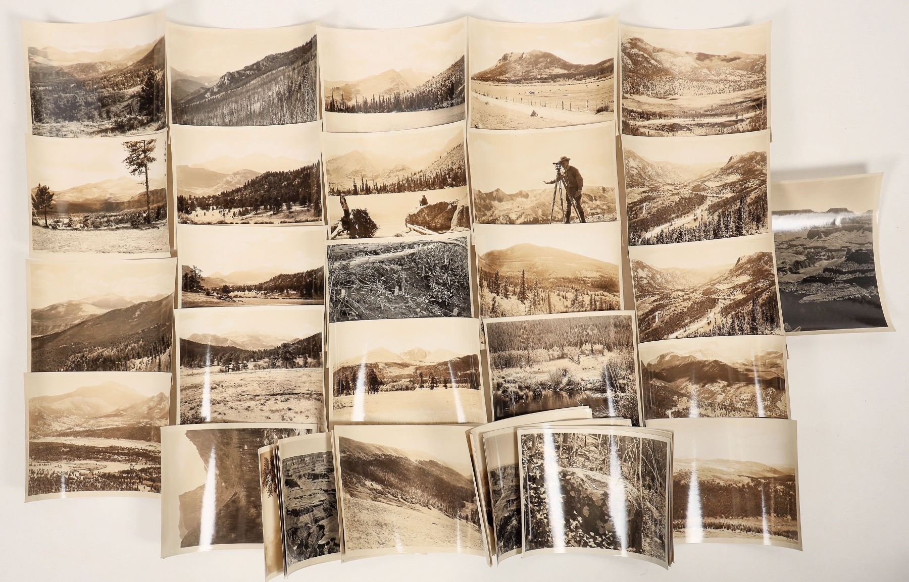 A collection of 57 photographs from the U.S. Department of the Interior documenting Rocky Mountains National Park and Grand Canyon National Park. Photos date c. 1930s. Views of forests, mountains, lakes, mesas, and desert landscapes are included. All have excellent focus and contrast. Great condition with the exception of being slightly curled due to storage.