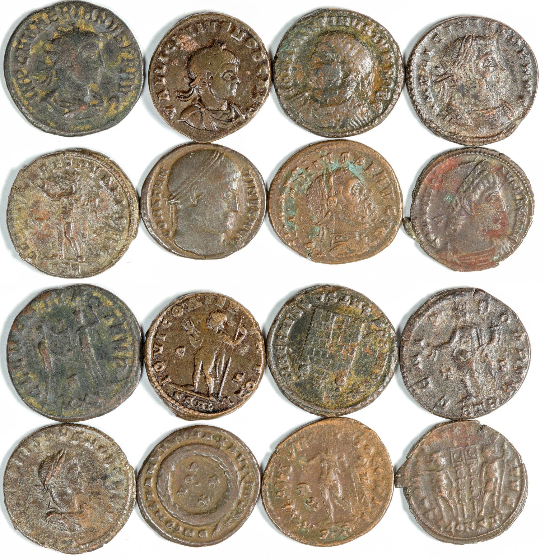 Lot of eight Roman bronzes, all approximately 20 mm, nice condition.