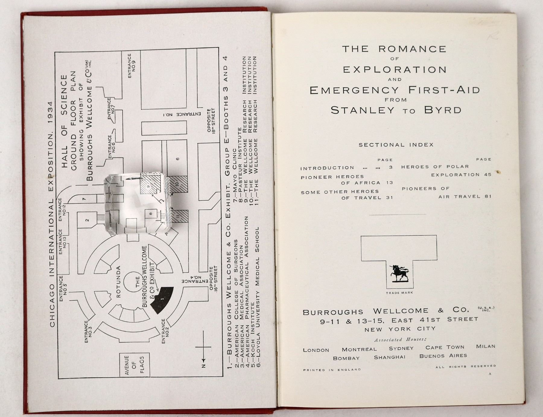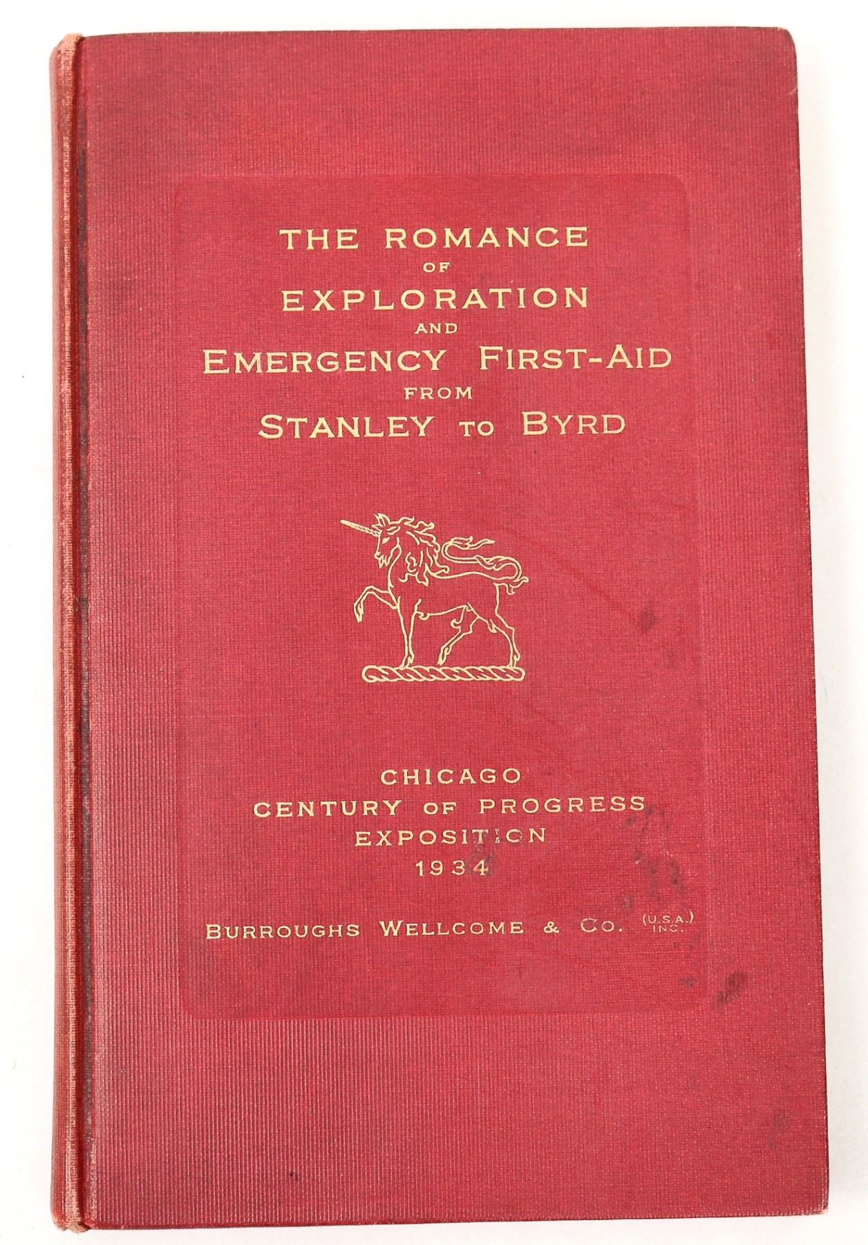 Rare, Romance of Exploration and Emergency First Aid from Stanley to Byrd, Chicago Century of Progress Expo, 1934. 160pp with index. Gilt cover.