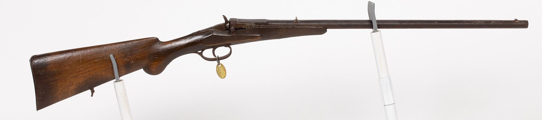Belgian Flobert Rook rolling block.32 rim, octagon barrel, bead front/ notch rear sight, metal butt plate. SN: 13, JMD Oval Tag: 9091, Condition: Poor, >