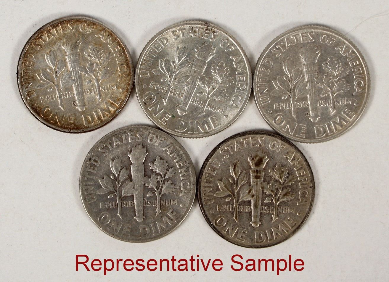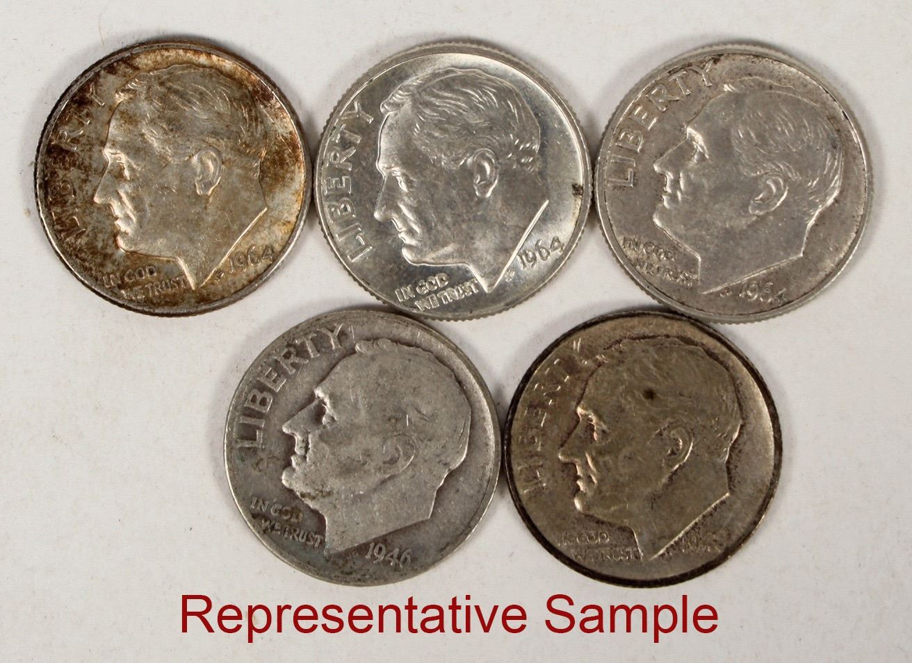 Better batch of 178 silver Roosevelt dimes, including many AU-BU from the 1940s & 1950s.