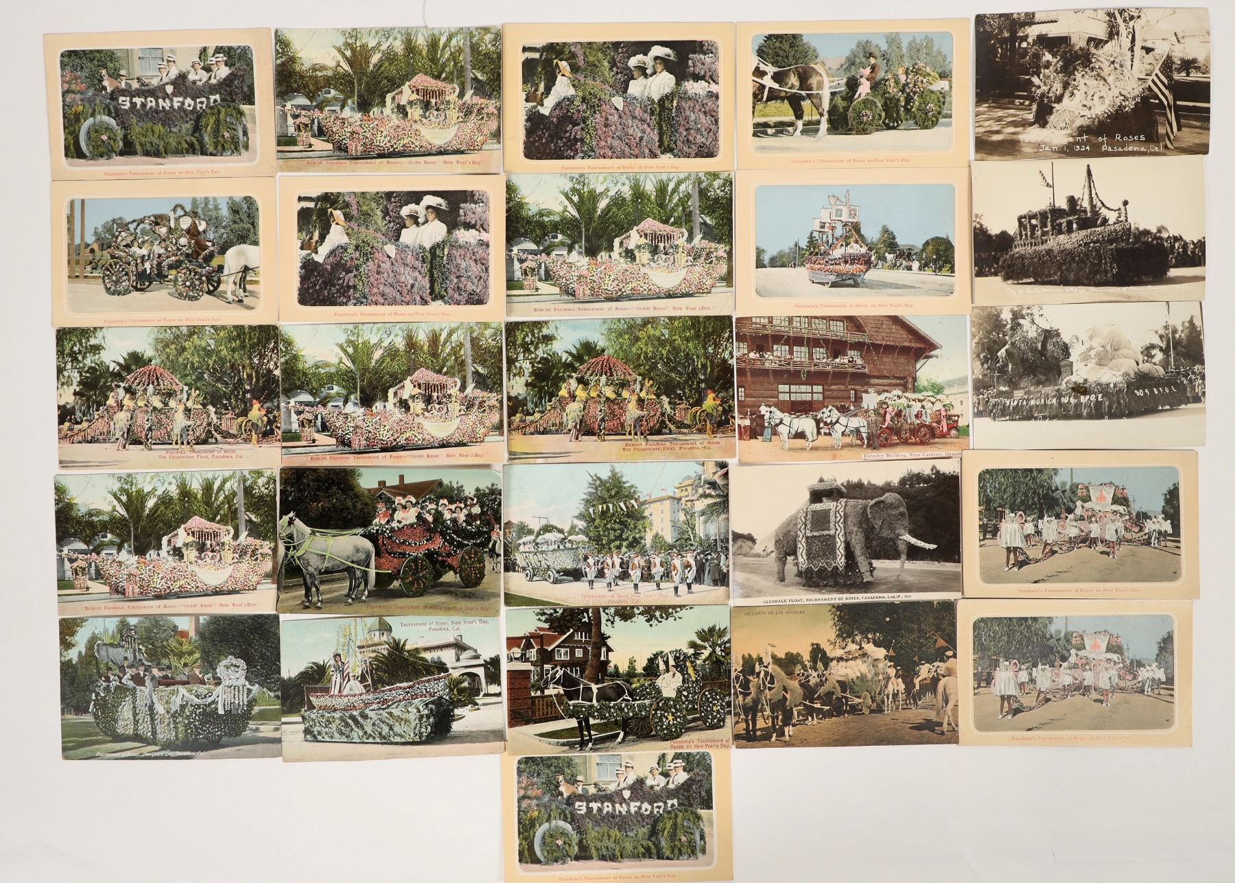 Lot of 25 including 4 RPPC. Mostly of floats in the parade. Duplication. Two mailed.