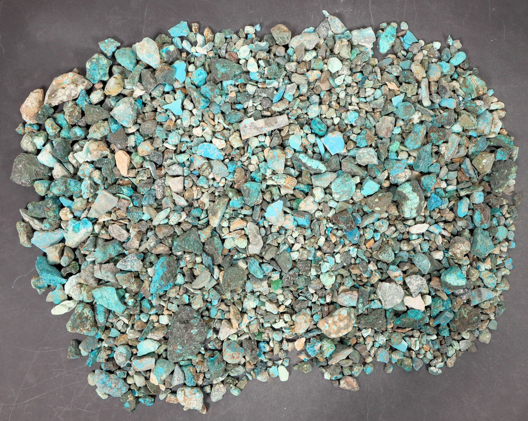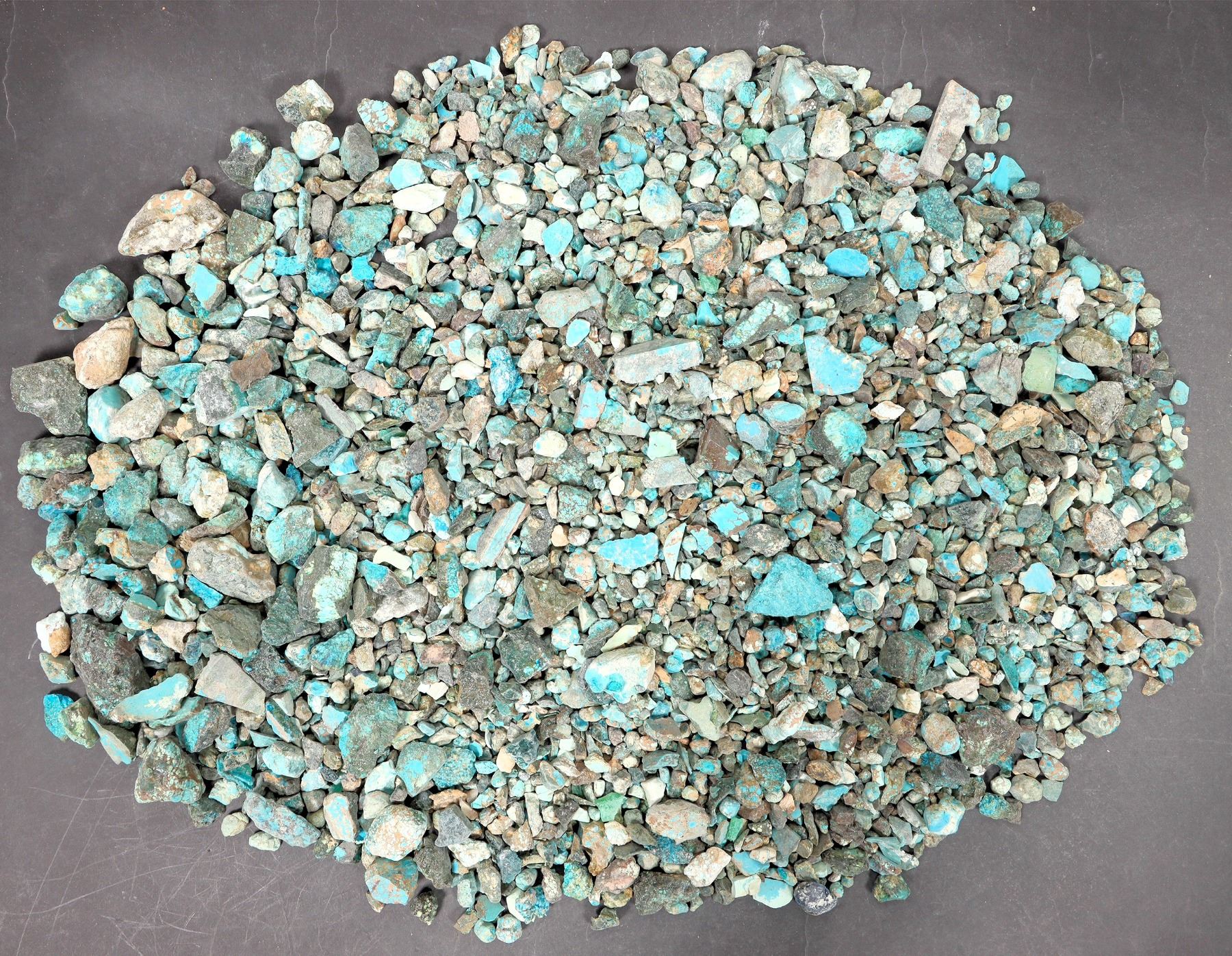 Rough turquoise - small pieces, treated, deep blue in color. Approximate weight 7.0 pounds. Pieces in the lot range from around .5" to 2.5" in length. Nice color; see photos. This turquoise originates from the No. 8 turquoise mine of Cortez, Nevada, often considered one of the top turquoise mines in the world. It was previously in storage for 35 years.