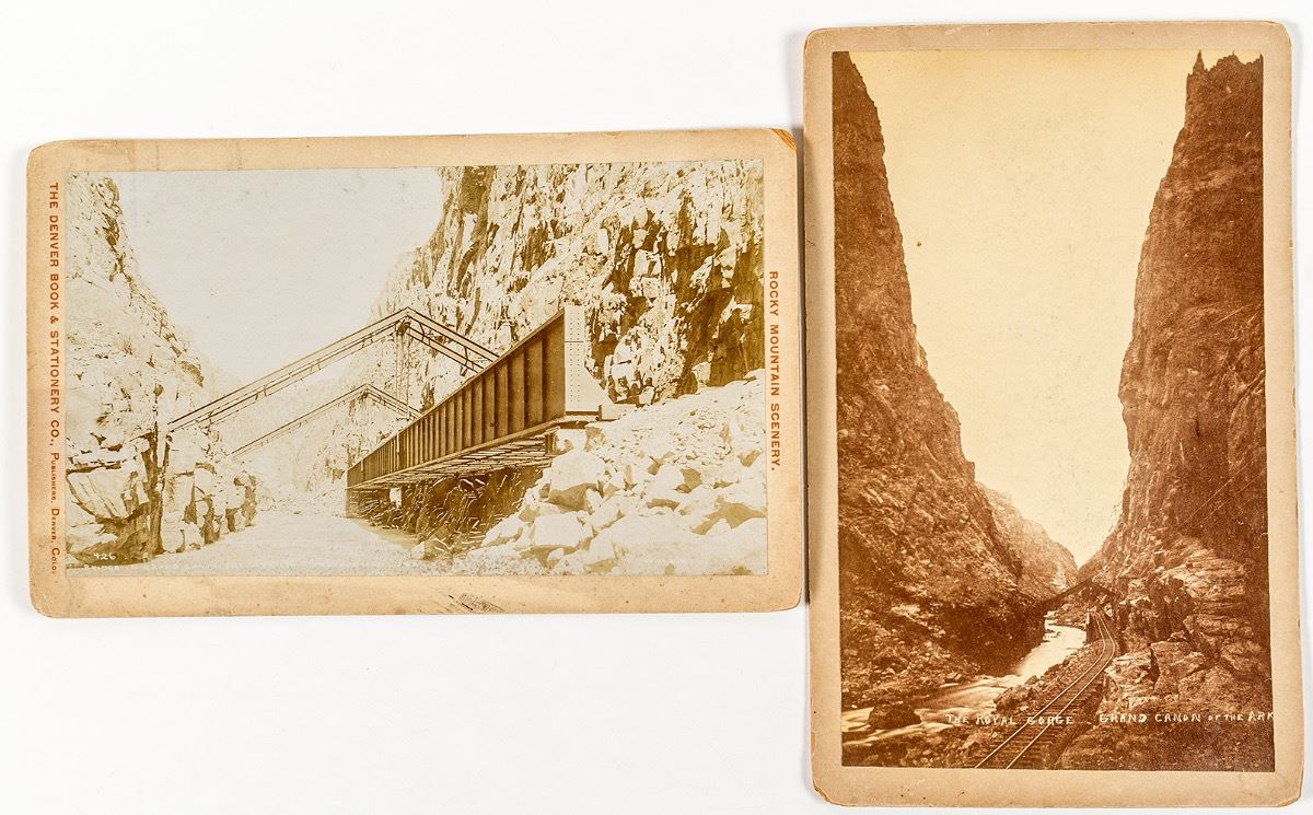 Lot of 2: "the Royal Gorge Grand Canon of the Arkansas" 4 1/4 x 7 1/2 inches; "Rocky Mountain Scenery" by the Denver Book & Stationery Company, also 4 1/4 x 7 1/2 inches. City: Royal Gorge State: Colorado Date: ID# 44707