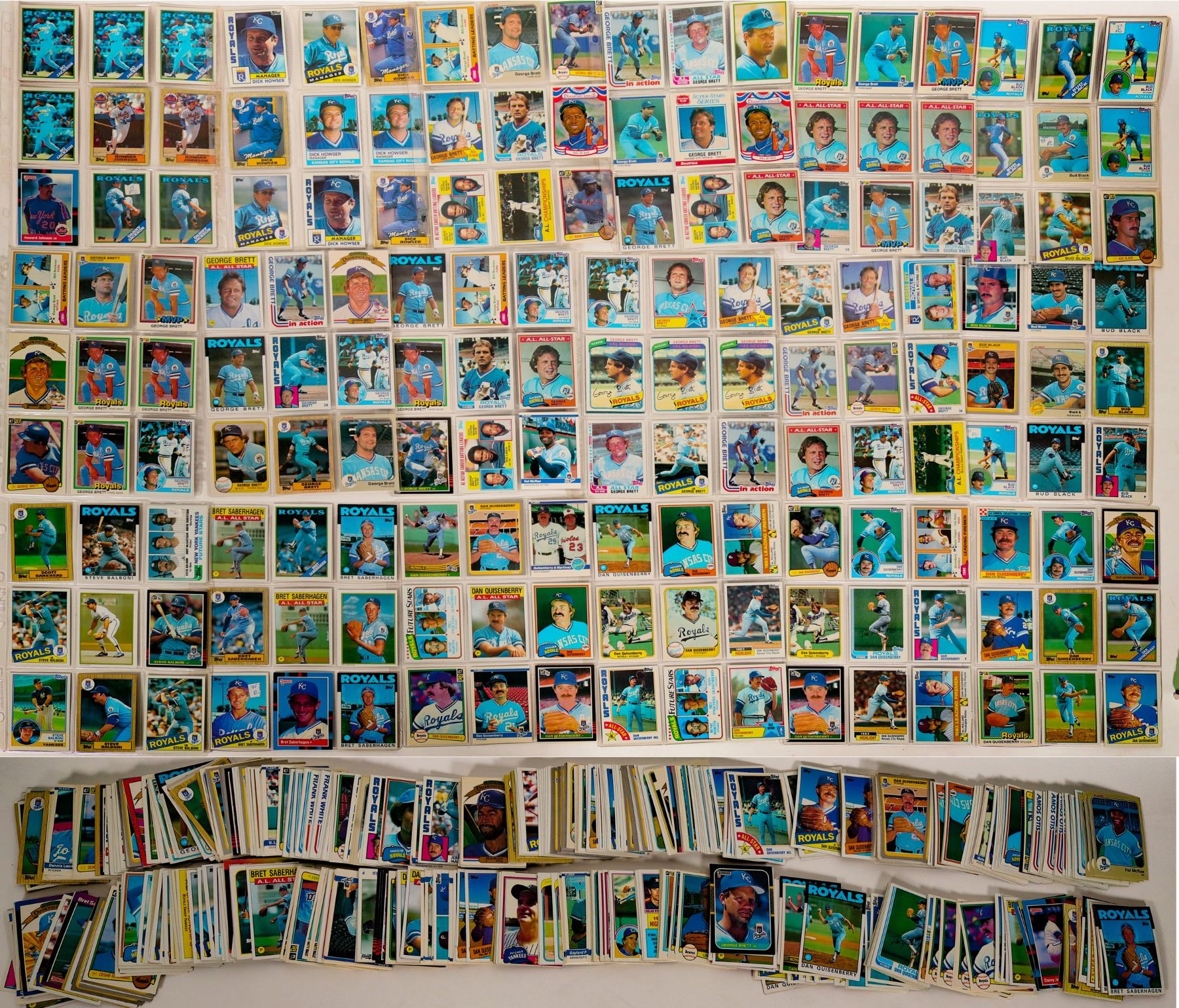 700 plus baseball cards from the years of Royals. Mostly Topps, c1975-1990. Mostly mint to near mint. Includes much duplication of the key players, and some cards from these players while with other clubs. Includes: Dick Howser, Amos Otis, Willie Wilson, Bret Saberhagen, Quisenberry George BRETT, Bo jackson