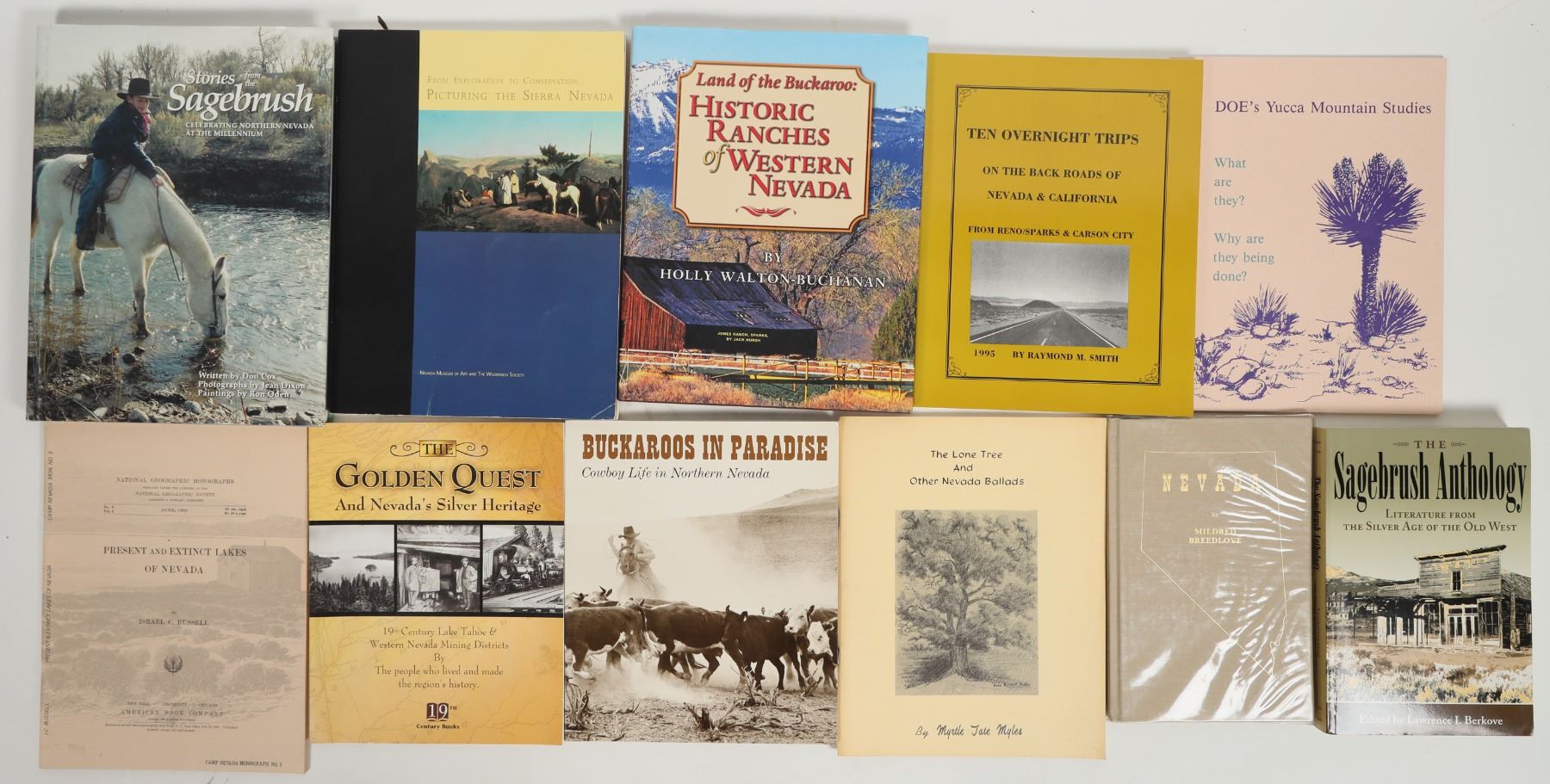 Group of 11 books on the topic of rural Nevada and the Wild West, published 1963 to 2013. Explores topics of Old West literature and history, cowboys and ranching, and rural Nevada ecology and travel. See photo for details.