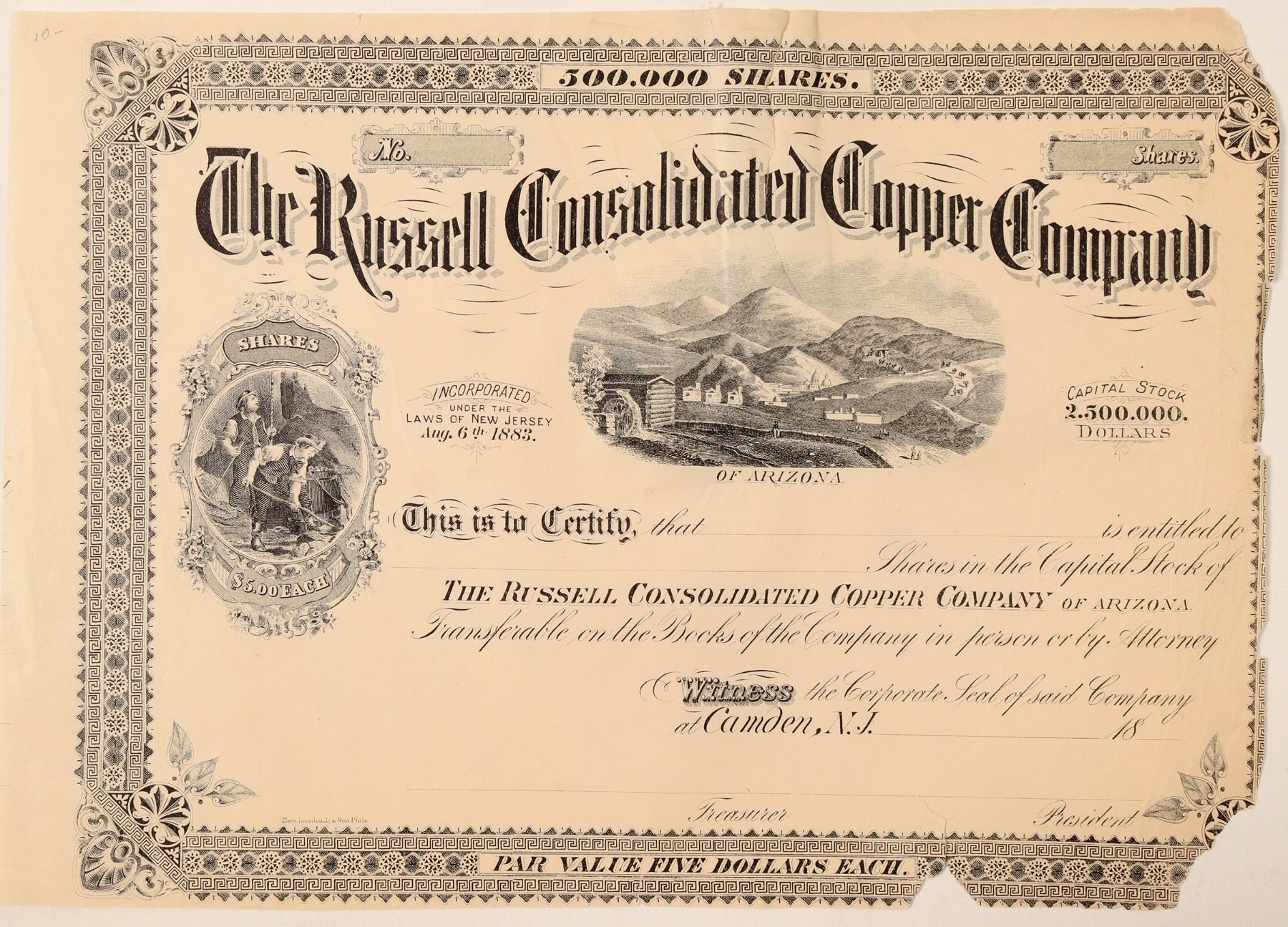 Russell Consolidated Copper Co. Stock "Proof" (100908)