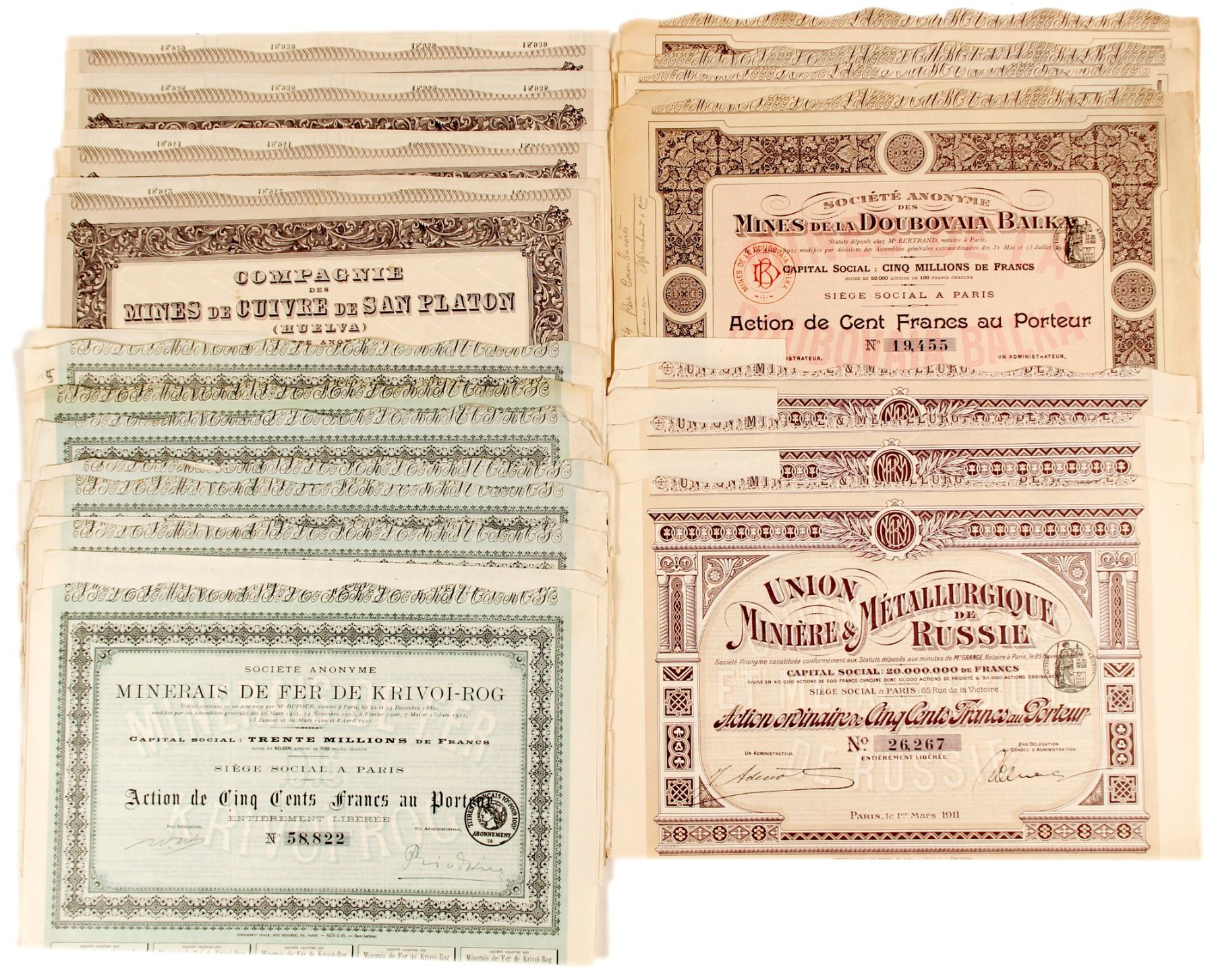 19 total certificates. All signed and unissued; all have revenue coupons still attached; all in good condition, some bending and discoloration.
