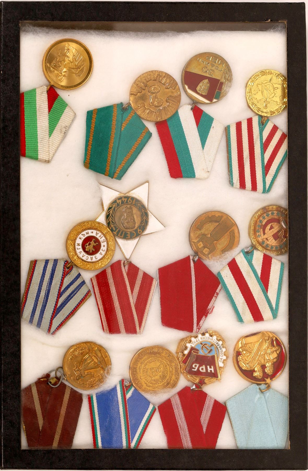 Lot of 12 medals with ribbons believed to be from Russia and Bulgaria.