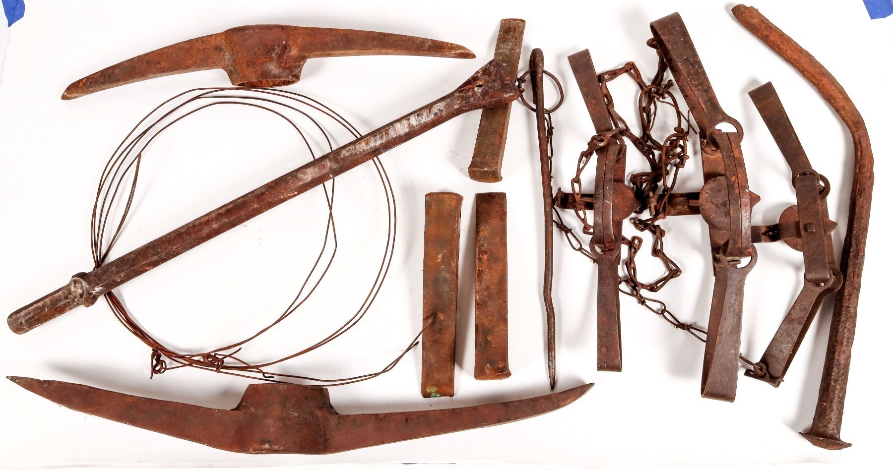 37 lbs. of rusty ax heads, wedges, a trap and more.