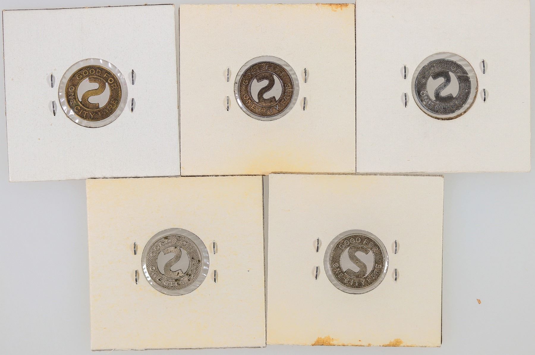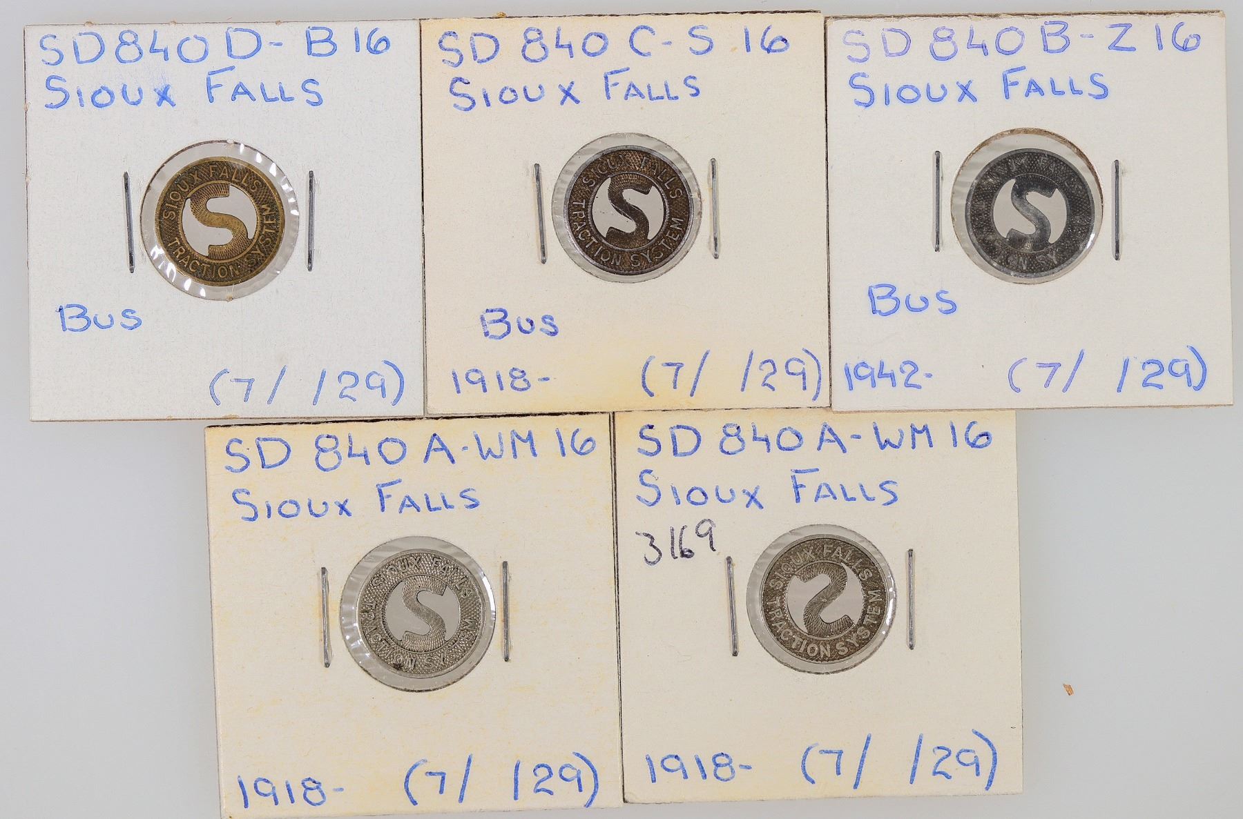 Group of 5 transportation tokens from various South Dakota companies. See photo for details.