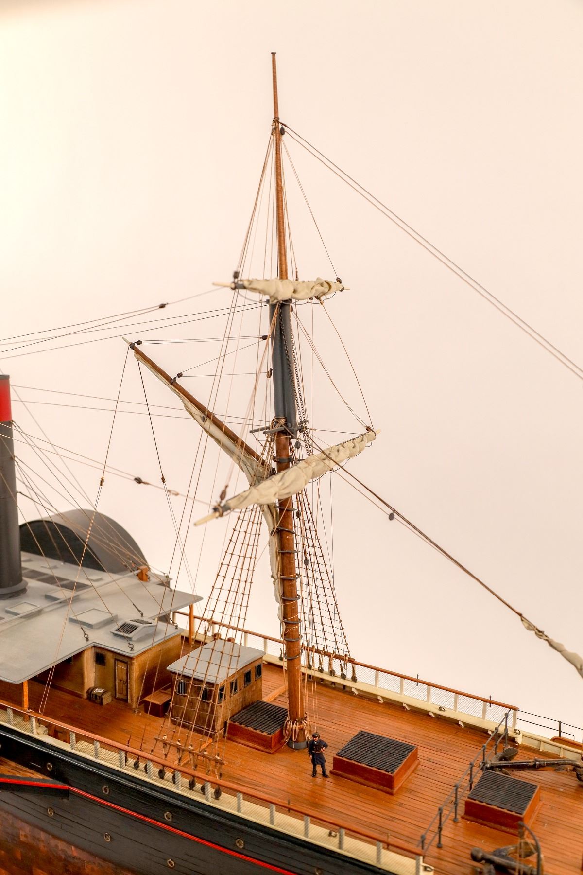 Bill Ballenger was an aeronautical engineer who went into a variety of engineering jobs that used his inventive nature. At some point in his career, he enjoyed model making of aircraft, which led to trains and finally ships. He preferred to only work with wood, disdaining plastic. Ballenger reportedly worked four hours per day on his models, which are prized by many North American nautical museums. This model of the S.S. Central America was commissioned by Columbus-America Group investors at a cost of approximately $10,000 -- completed in 1991, the fourth recovery year -- when it was presented by those investors to the Company. For more information, see John M. MacFarlane, "Bill Ballenger Ò Ship Model Maker" at http://nauticapedia.ca/Gallery/Ballenger_Bill.php.