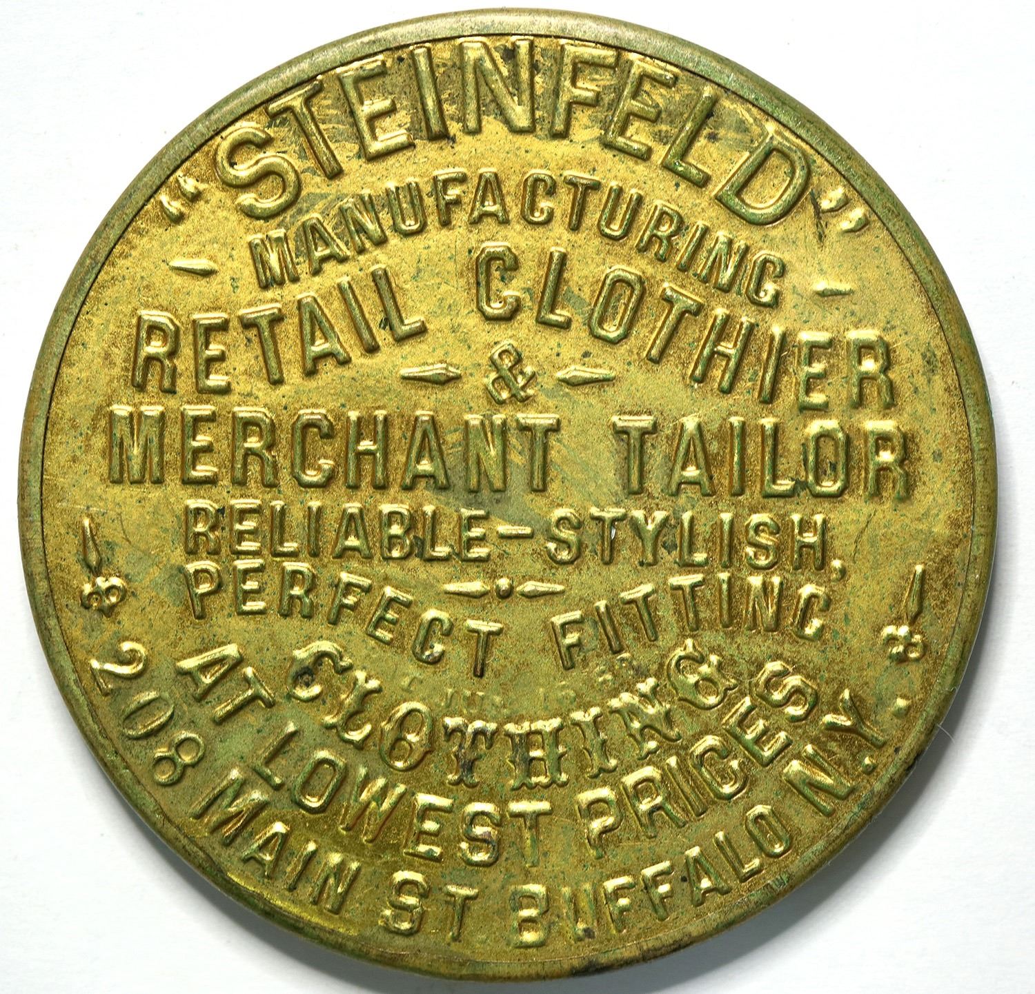 Reverse: Steinfeld/Manufacturing/Retail Clothier/Merchant Tailor/Reliable-Stylish/PerfectFitting/Clothing/At Lowest Prices/208 Main St./Buffalo N.Y./emb. metal/50mm.