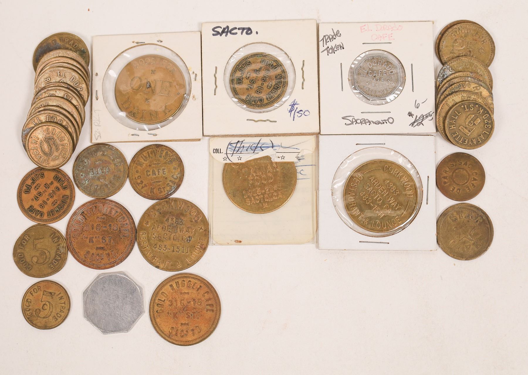 Lot of over 30 tokens from Sacramento cafes. El Dorado Cafe, Gold Nugget Cafe and many more. Ex: Ron Lerch collection.