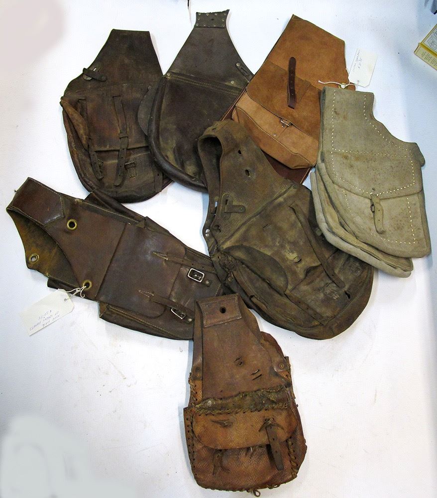 Six vintage saddle bags of various design and age. please see the photo. No makers marks, a great group for any saloon or restaurant display. Date: Location: HWAC # 55955