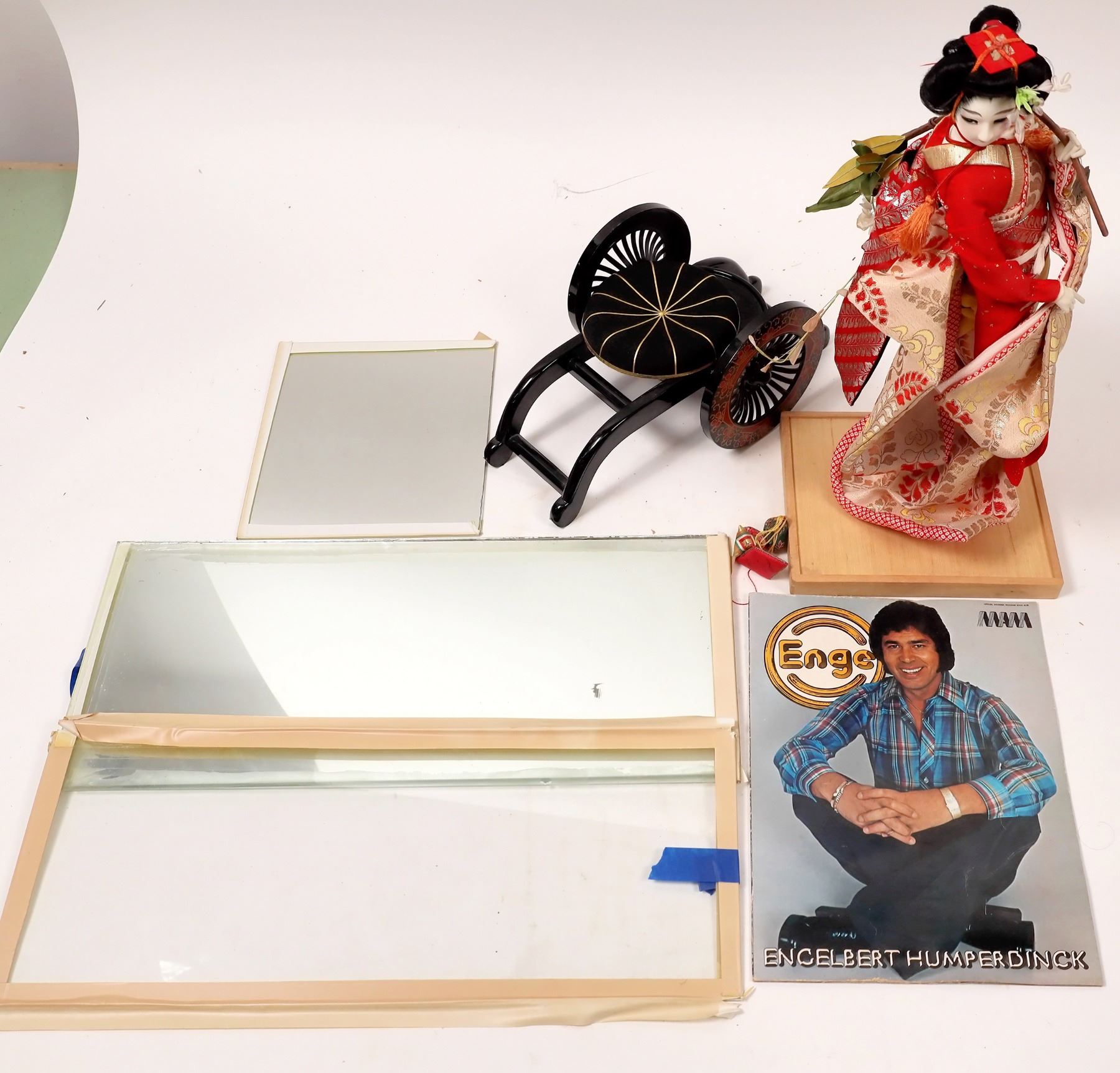 This Sakura Geisha Doll measures 17 in. on a wood base. Excellent condition with tag and flowers. No sun fading. Please see photos.
