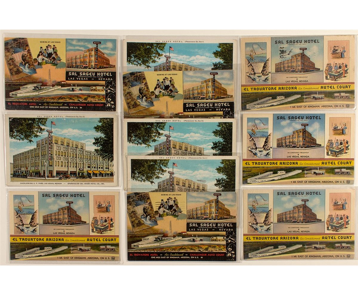 Lot of 10: these unusual cards also advertise for the El Trouatore Arizona Autrel Court Hotel in Kingman, AZ. This group has multiples of 3, for each of 3 different cards. All are in excellent condition.