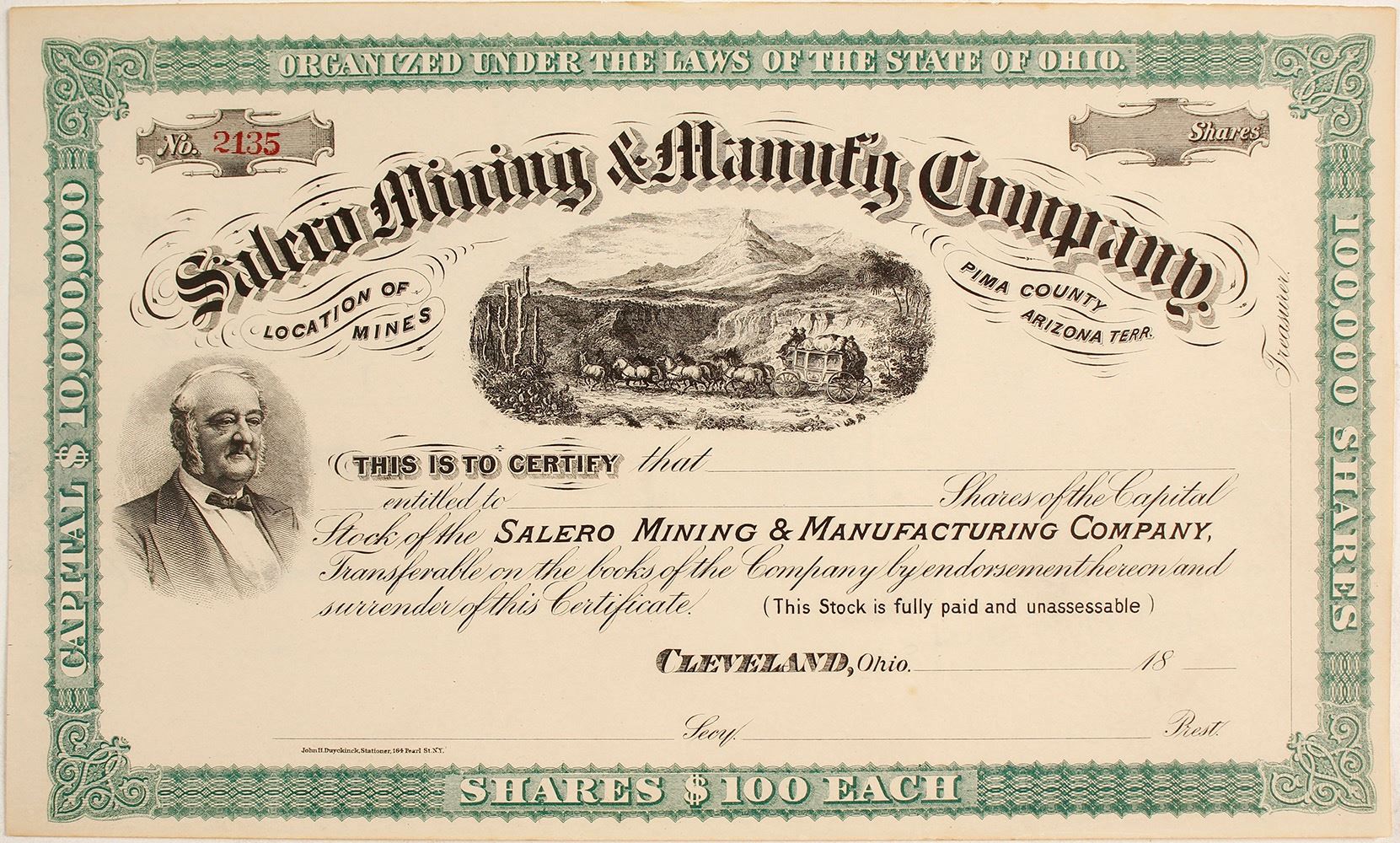 The Salero Mining Company was one of the earliest mining companies organized to exploit Arizona’s mineral wealth. The company was organized by William Wrightson of the Cincinnati Enquirer, but such notables as H. C. Grosvenor, an English mining engineer, Gilbert Hopkins, mineralogist and engineer, Raphael Pumpelly, geologist, engineer, author and later professor at Harvard, were associated with the company. It was headquartered in Tubac from 1858 to 1861 (Hinton, 1878, p. 197). The Salero mine was worked by the Spanish and Mexicans before 1800, as one of the first mines on record in Arizona. It was located on the Arivaca Ranch, which contained a number of good silver mines worked since at least 1750. While production was noted throughout the historical record, there are no definitive statistics available on the amounts of silver taken from the Salero or other Arivaca mines near Tubac and Santa Rita. An excellent discussion of the early mining period is given in both Bancroft’s History of Arizona (1889) and by James Officer in History of Mining in Arizona Volume II and John Lacy in Volume I.