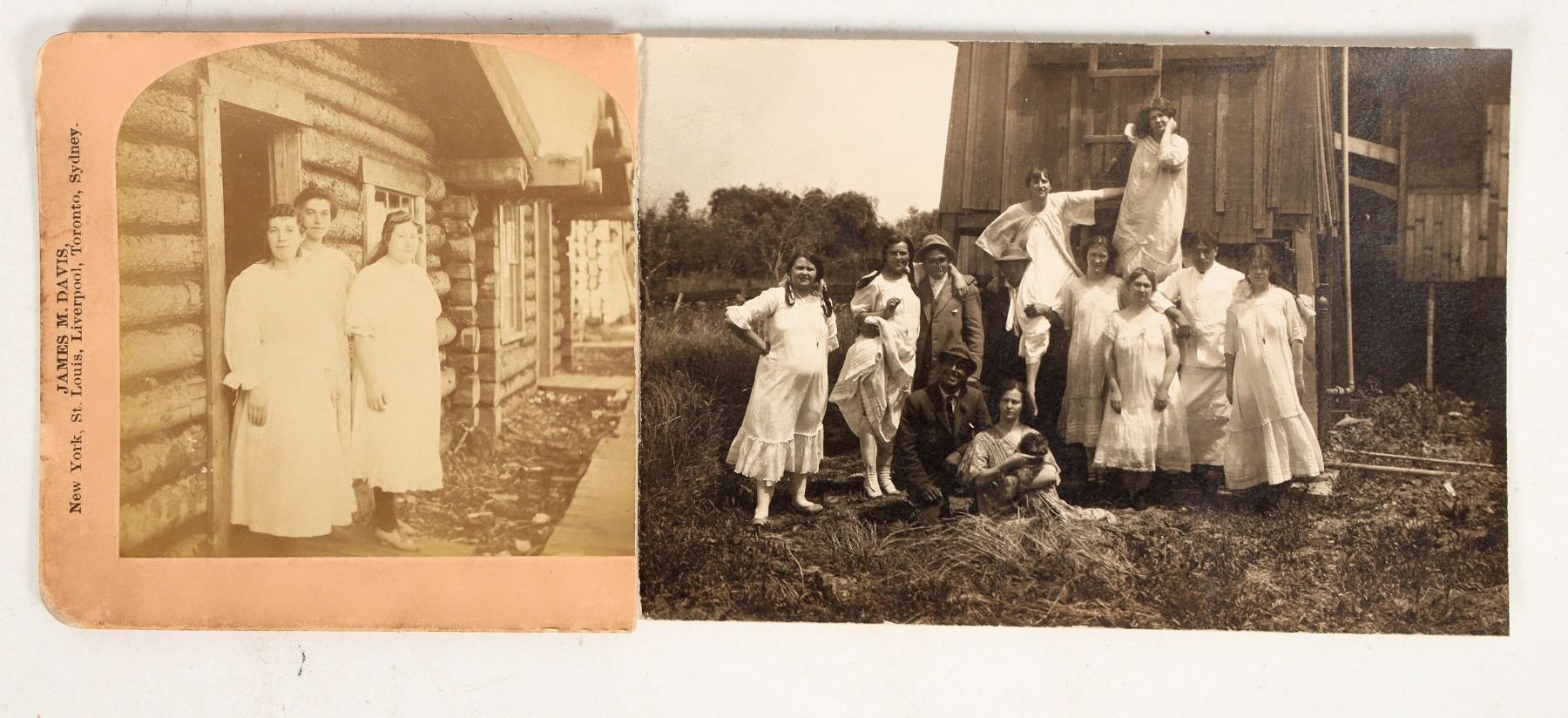 There is an RPC from Antioch, Cal. dated 1914 with several Johns posing with working ladies. The faces of the men have been disfigured to hide their identity. The second photo is one half of a stereoview depicting three working ladies in Dawson City, Alaska. Good color contrast in both photos. Please see photo for details.