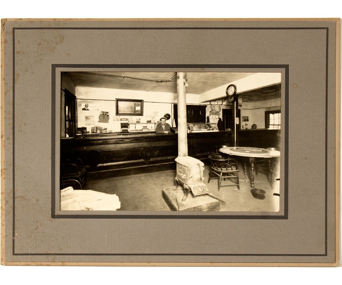 8 x 10" matted saloon photo with pot belly stove and poker table.