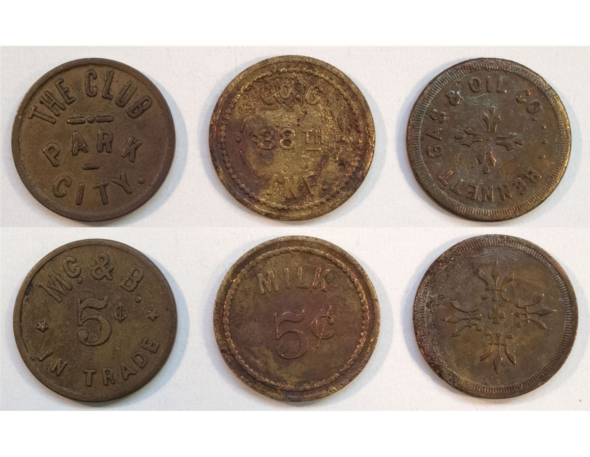 38th Infantry Co. G // MILK 5c Token. 2.) BENNETT GAS & OIL CO. 3.) THE CLUB PARK CITY // Mc & B 5c IT Date: UT hwac 5831