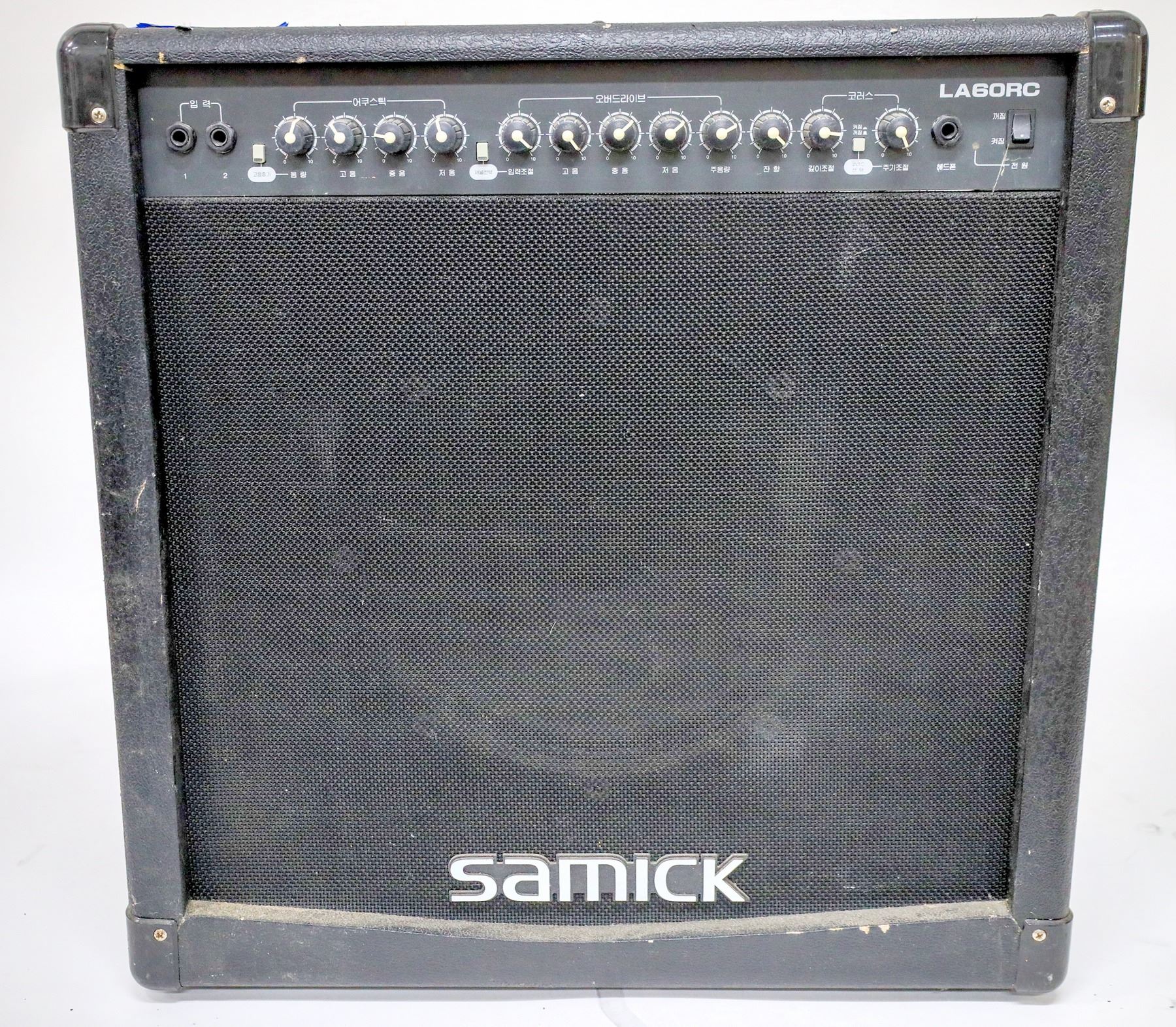 Samick LA60RC 60 watt instrument amplifier, input wired for 220 VOLTS, 60Hz. Not intended for use with 120 volts. Back panel written in Korean. 22x23x12" Cameron Holloway Collection [Cameron Holloway Collection]