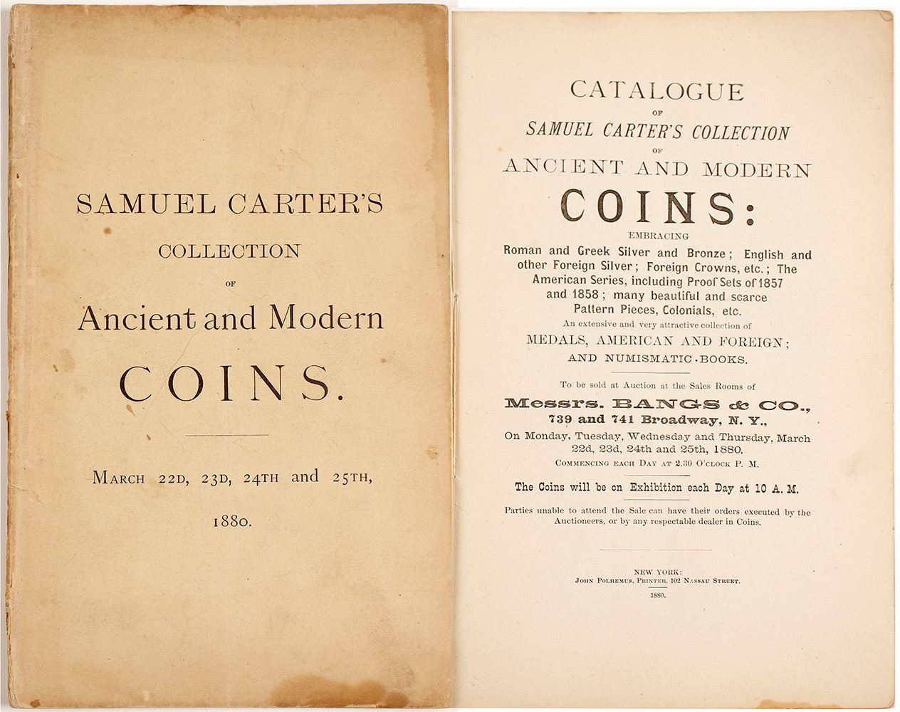 Sold at the auction rooms of Bangs & Co. 739 & 741 Broadway, New York during March of 1880. 5 3/4 x 9 1/4 inches, 72 pages. Numbers written next to lots probably selling prices. The sale lasted four days, so this scribe was a trouper! HWAC# 61950 Date: 1880 Location: