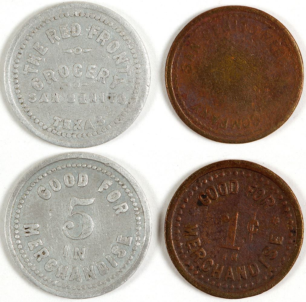 Two tokens. GF 5c IT, and The Red Front Grocery HWAC# 62424 Date: Location: San Benito, Texas
