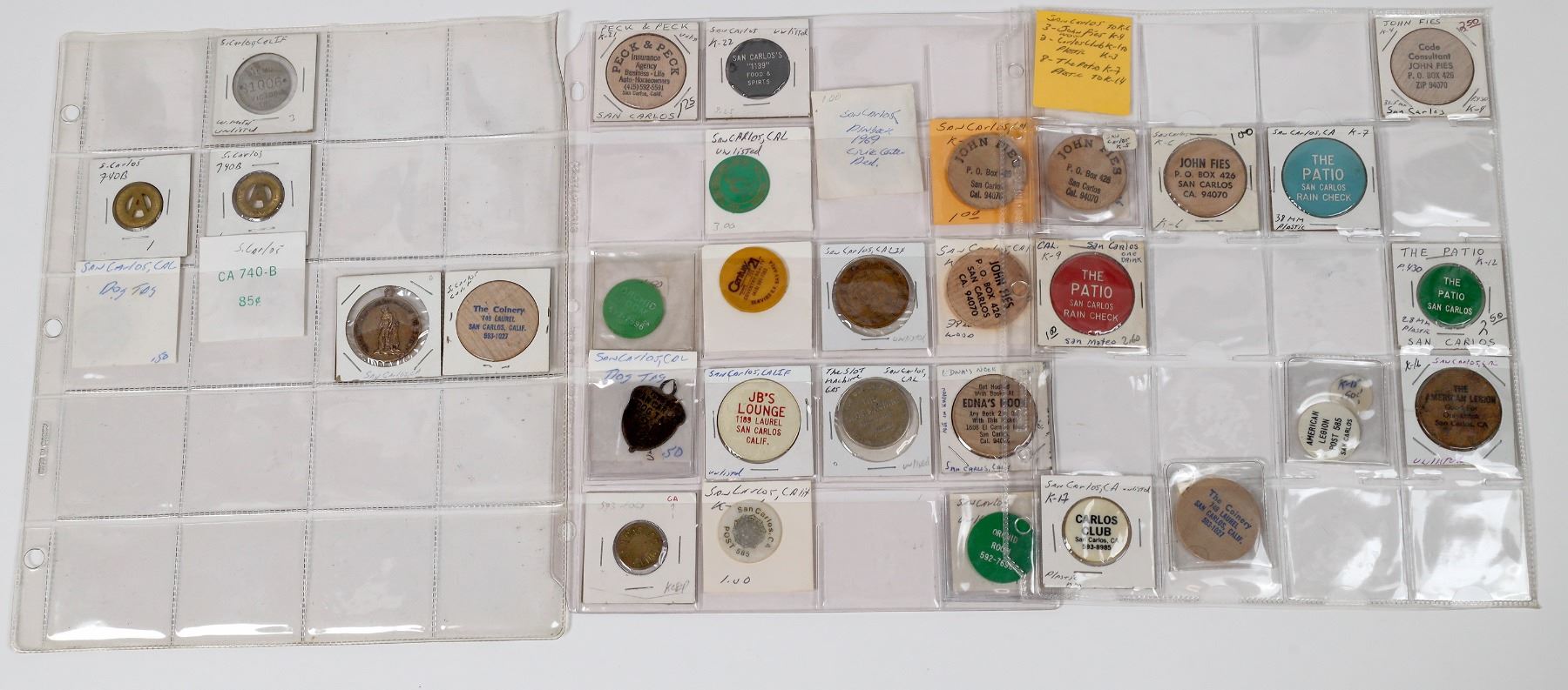About 25 San Carlos Tokens. The Patio, American Legion, JB's Lounge, The Coinery, Carlos Club, Peck & Peck, John Fies etc.