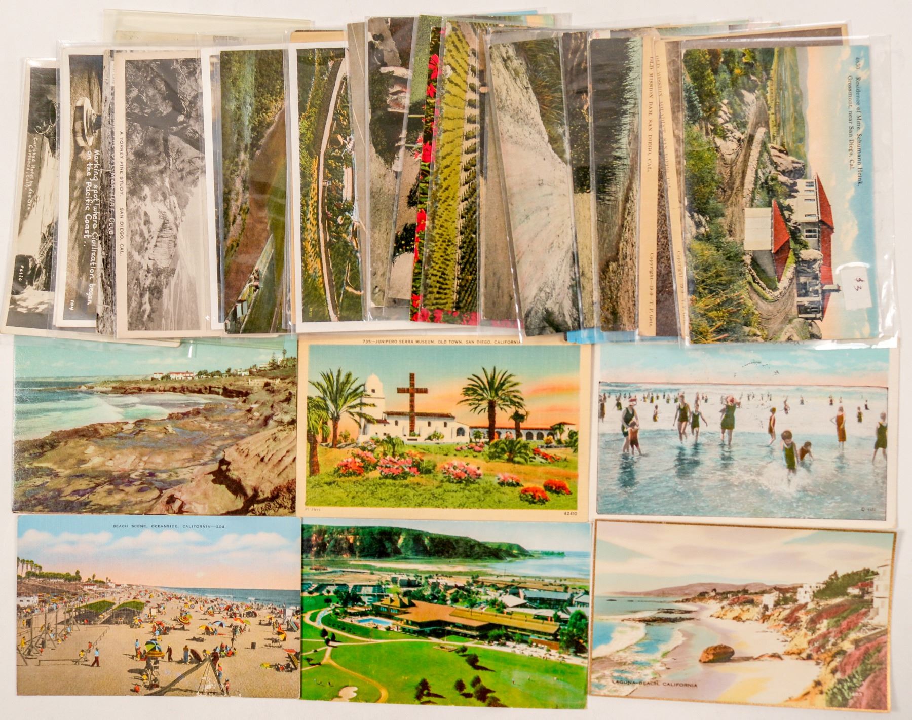 Approx 30 San Diego, CA area postcards with 7 RPC's-Carlsbad Hotel, army tanks, torrey pine, beaches and more Salvatore Falcone Collection