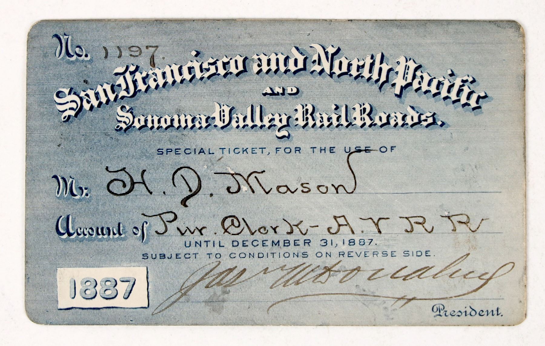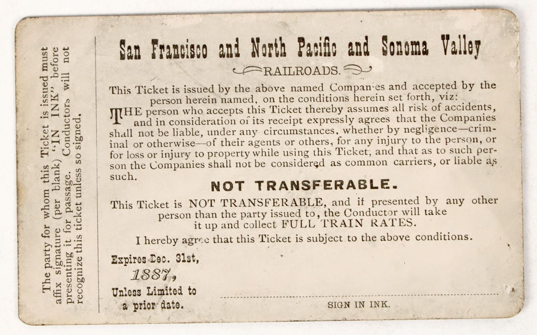San Francisco and North Pacific and Sonoma Valley Railroads Pass. See photo.