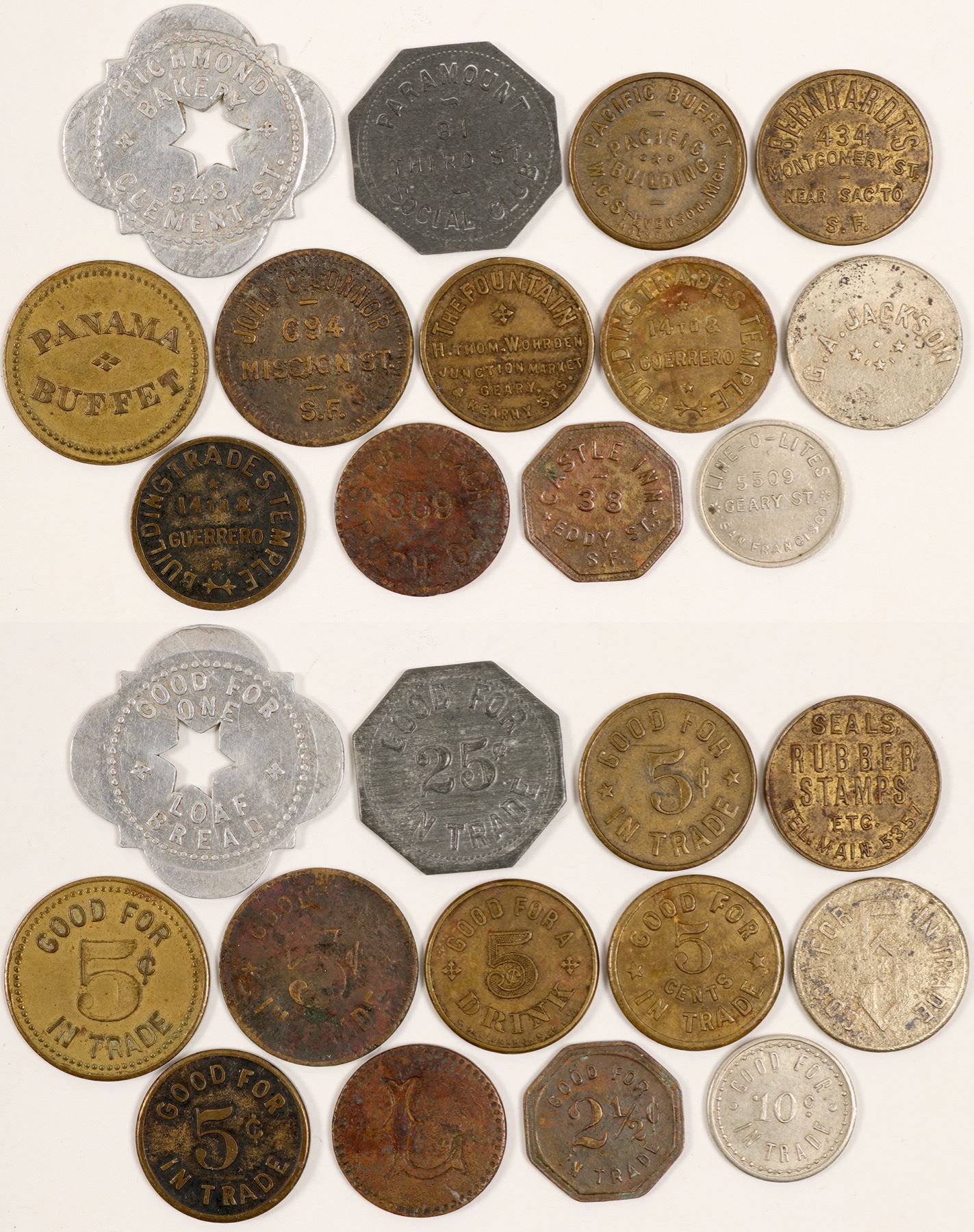Thirteen Kappen Listed Tokens. Pacific Buffet, Building Trades (2), Stock Exchange, The Fountain, Panama Buffet, Castle Inn, G A Jackson, Paramount Social Club, John O'Connor, Bernhardt's, Richmond Bakery, Line-0-Lites. State: California City: San Francisco Date: