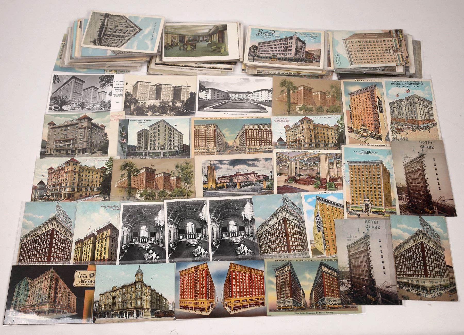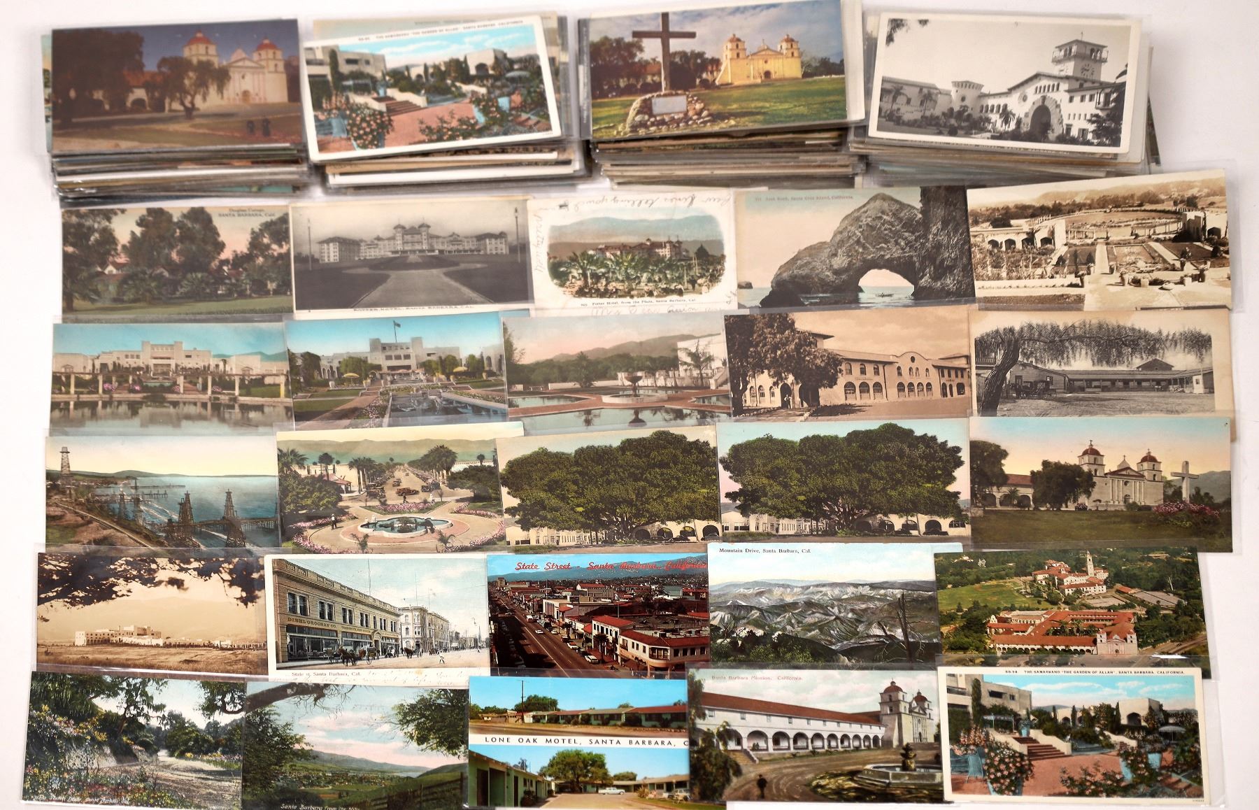 Lot of over 200 vintage postcards from Santa Barbara California. Persian Hotel; street scenes; 1925 earthquake RPCs; Santa Barbara Mission; oil wells in the sea; Hotel Potter; Hope Ranch; a bi-fold panorama of the Rancheria motor lodge. State:California City:Santa Barbara Date: Provenance: Ken Prag Collection