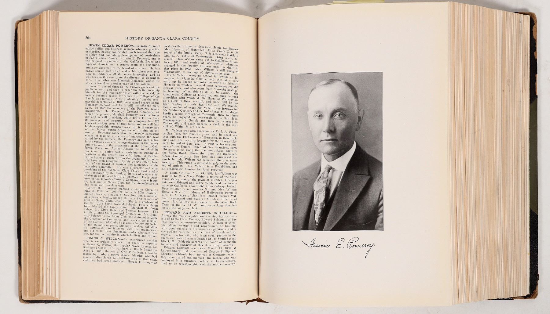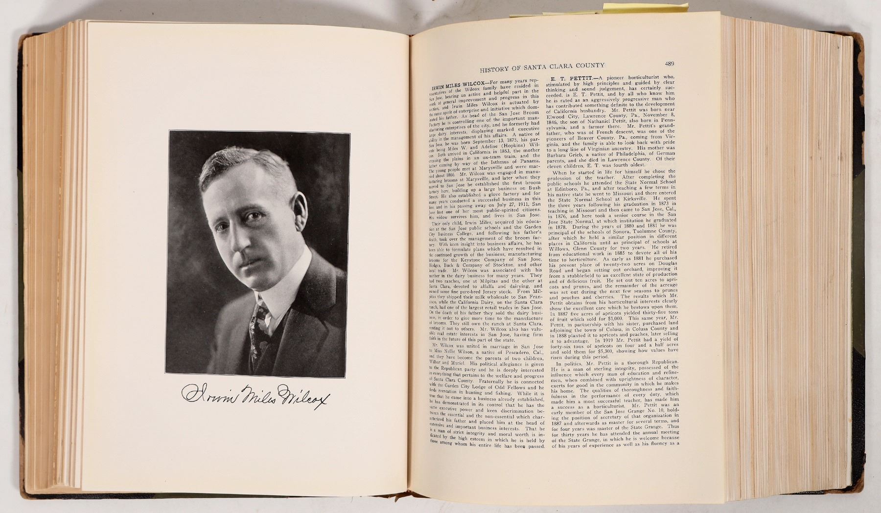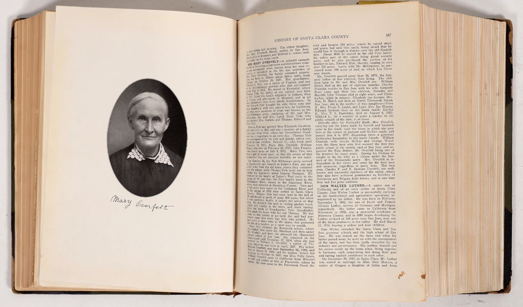 A copy of 'History of Santa Clara County, California, with Biographical Sketches of the Leading Men and Women of the County who have been Identified with its Growth and Development from the Early Days to the Present' by historian Eugene T. Sawyer, published in 1922 by the Historic Record Co. of Los Angeles. The book is illustrated with photographic portraits of notable Santa Clara residents. Hardback, 1692 pages. The book has some wear to the cover, and the spine has been replaced entirely. See photos. An excellent reference piece for any California historian.