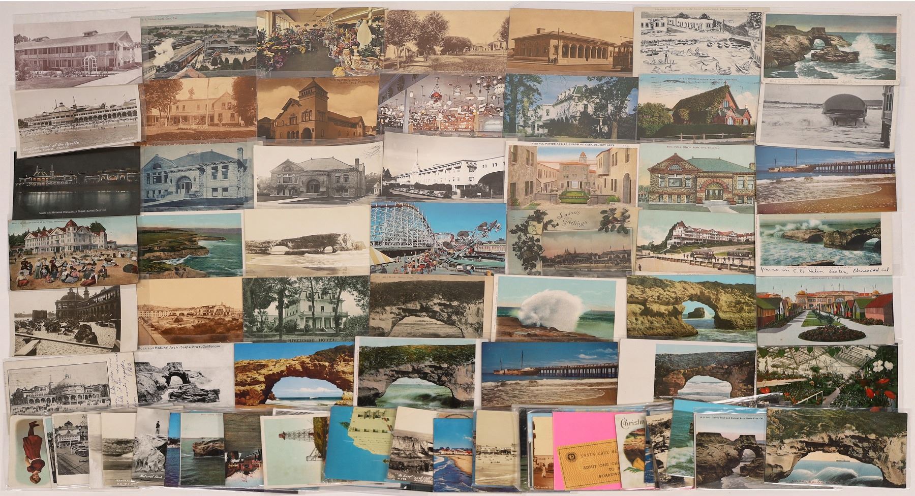 A large collection of RPC's and postcards featuring my second home as a teen, Santa Cruz, California. Cards feature photos of the iconic casino though the years, luxury beachfront hotels and the world famous boardwalk. There are also cards showing the beautiful beaches including Natural Bridgesand Sea Cliff Drive. Some of the cards have been used, some are blank. This is a beautiful, nostalgic collection. Please see photos for more detail and condition.