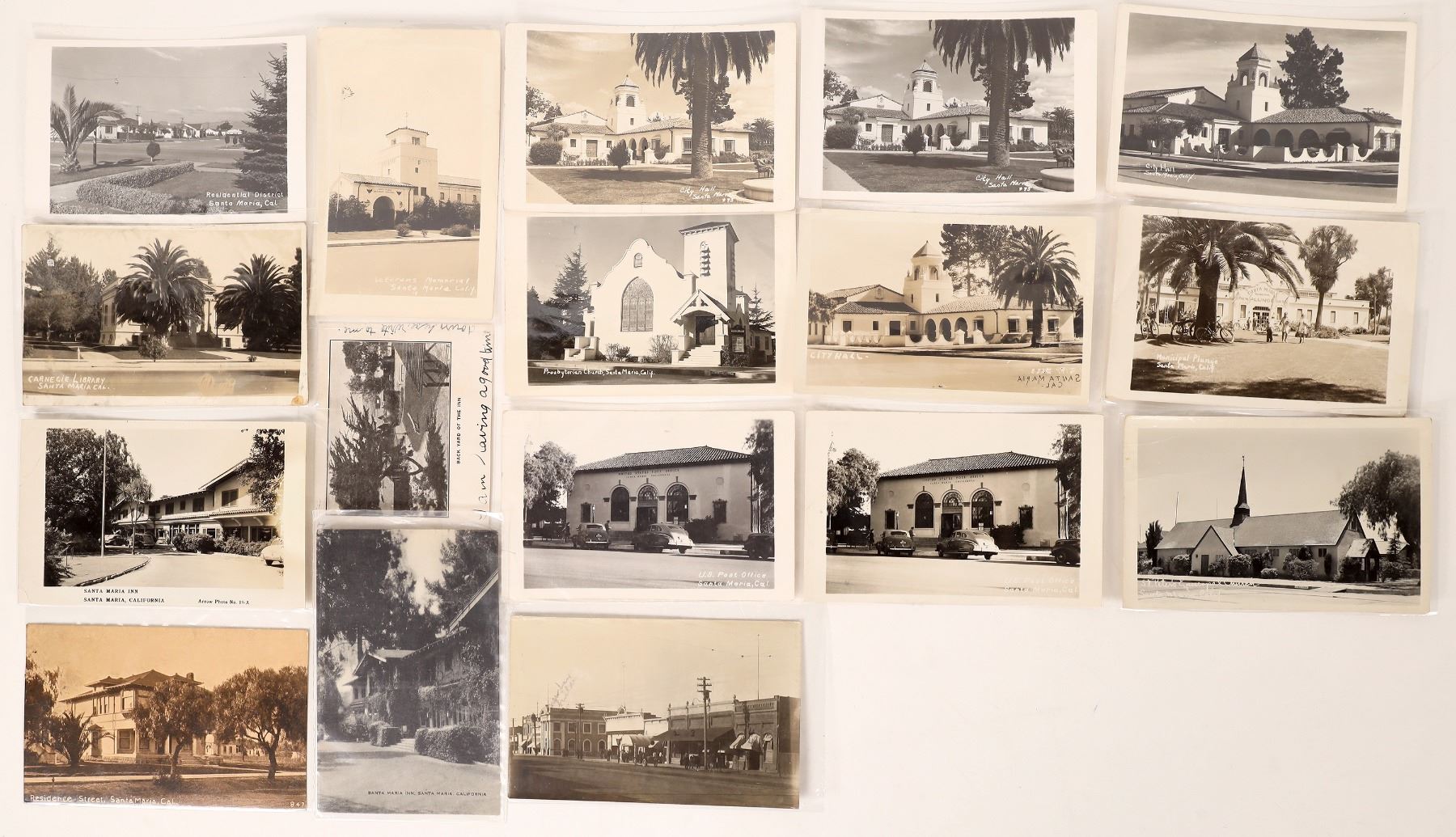 Lot of 17. One PMC, one amber.B/W wht. borders. postmarks : Santa Maria, San Luis Obispo, Placerville. Stamps are all 1 cent of Washington, Statue of liberty and Franklin ( side and frontal comm). Street level view : Veteran's Memorial, Santa Maria iNN, City Hall, residential streets, churches, Santa Maria California 1907-49 Ken Prag Collection